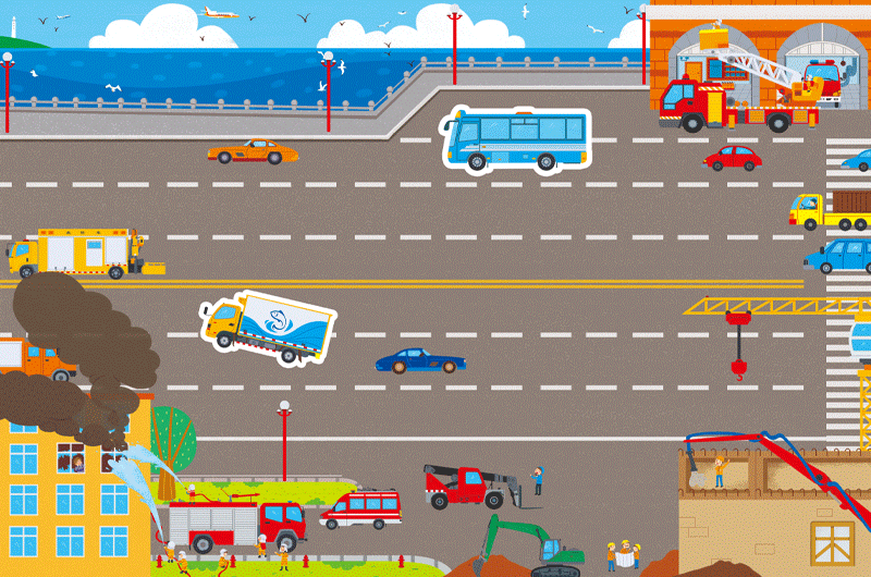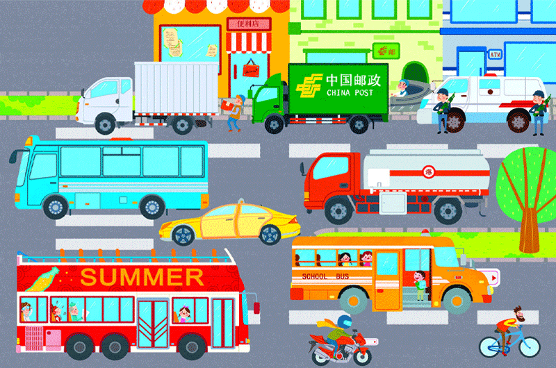 学习:海、陆、空各色交通工具,急救、建设各种场景,满足小小机械迷的学习欲望、探索精神!