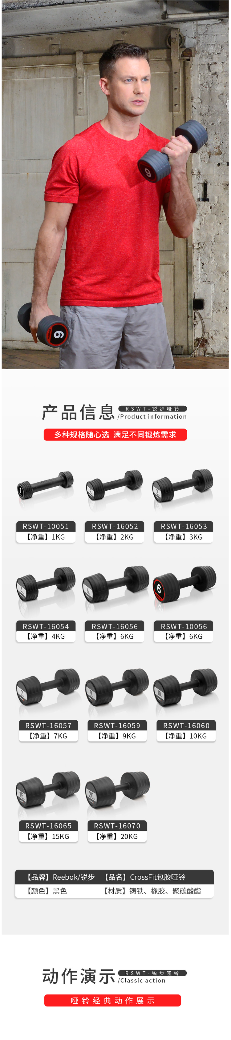 这款锐步 家用包胶哑铃,采用橡胶全包覆设计,耐磨耐摔,延长使用寿命,不仅噪音小,还能减少对地面的损伤。