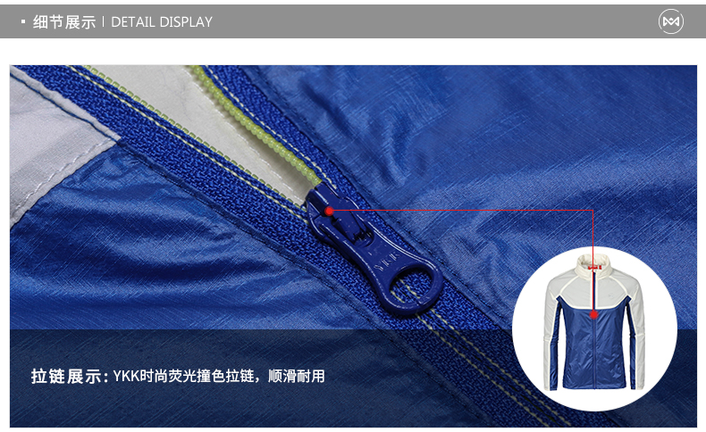 在款式上,无帽/一体连帽设计,前身和后身都有专门的透气孔,弹力松紧袖口和下摆防止漏风,YKK拉链,衣服可以轻便易收纳。
