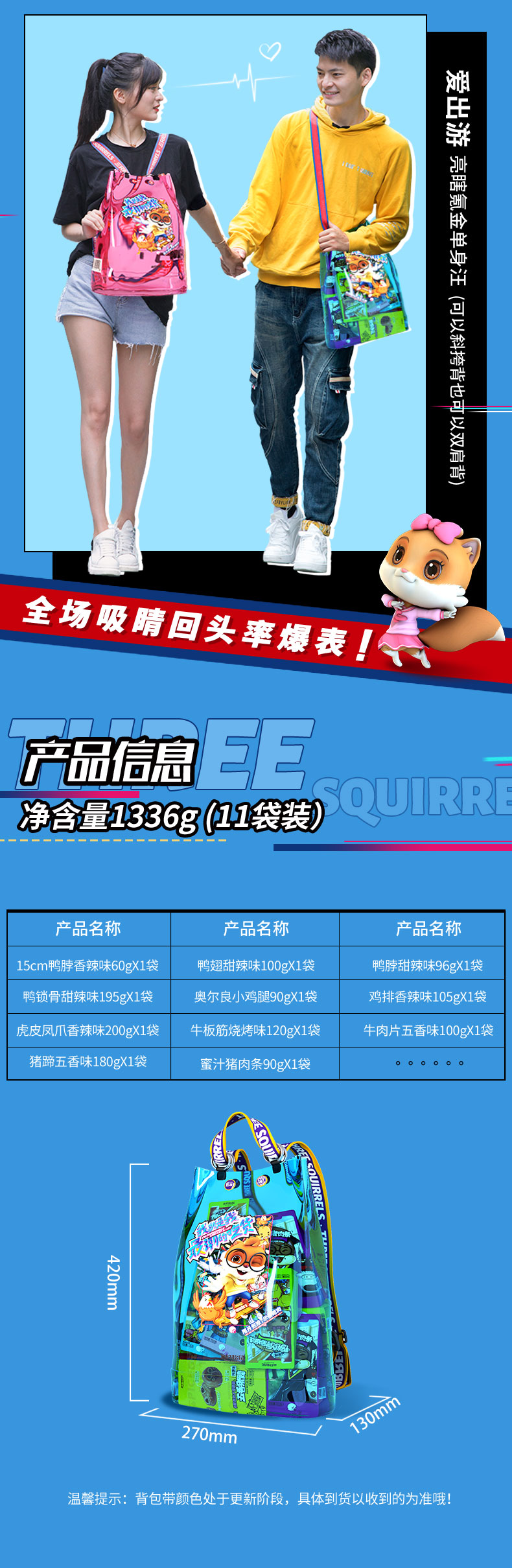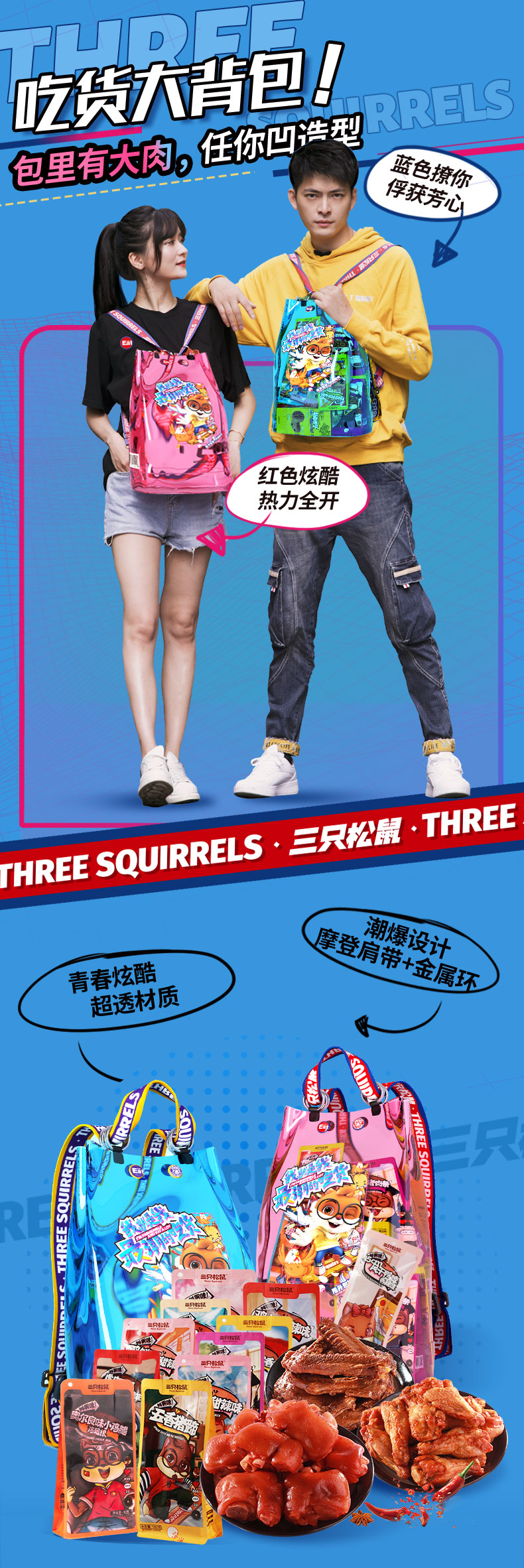 天猫三只松鼠旗舰店188元,下单立减30元,可领30元优惠券,实付128元到手,萌鼠伴中秋 潮礼提前送。全是肉制品,没有水果罐头水果干之类的凑数东西,全是硬通货,送专属背包,内含11大袋,包括:鸡腿,凤爪,牛肉片,牛板筋,鸭脖,鸭翅等等,一共1463g/12袋,送人自己吃都很好!