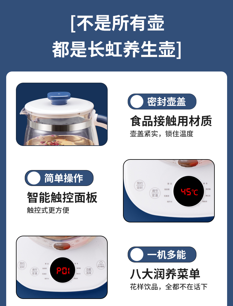 长虹 全自动煮茶器养生壶,加厚高硼玻璃材质,不惧冷热,煮茶,泡发煮,花果茶、药膳,养生汤等八大功能,一键启动,自动静音烹煮,24小时智能预约,12小时长效保温,居家健康养生之选!
