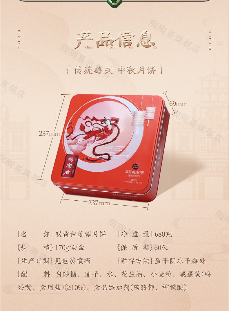 天猫陶陶居旗舰店178元,下单立减30元,可领30元优惠券,实付118元到手,家喻户晓的百年老品牌,新鲜出炉的双黄白莲蓉月饼,精选好食材,双星映月,严格料理,送礼体面上档次,赠送礼品袋,赠运费险。
