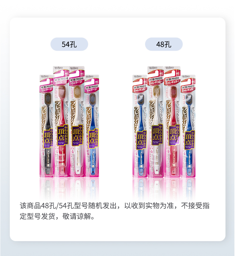 这款牙刷大宽头设计,毛孔数是普通刷头的2倍,能大面积的覆盖上下牙齿和牙龈,日本东丽定制刷毛,丝径20微米,双层不同柔软度、平尖两种的刷毛设计,柔与力兼施,清洁与按摩兼备,呵护娇嫩牙龈。选用铜片以15°固定刷毛,提高刷头强度和耐腐蚀性,干净又耐用。