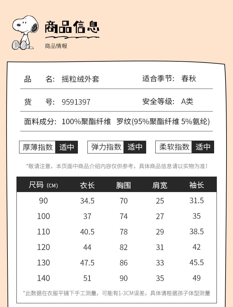 天猫petitmain童装旗舰店129元,可领50元优惠券,实付79元到手,史努比联名系列,柔软摇粒绒,摇粒绒的保暖性是羊毛的2倍、棉花的4倍,同时兼具轻盈透气、柔软亲肤、不易皱、易打理等特点。