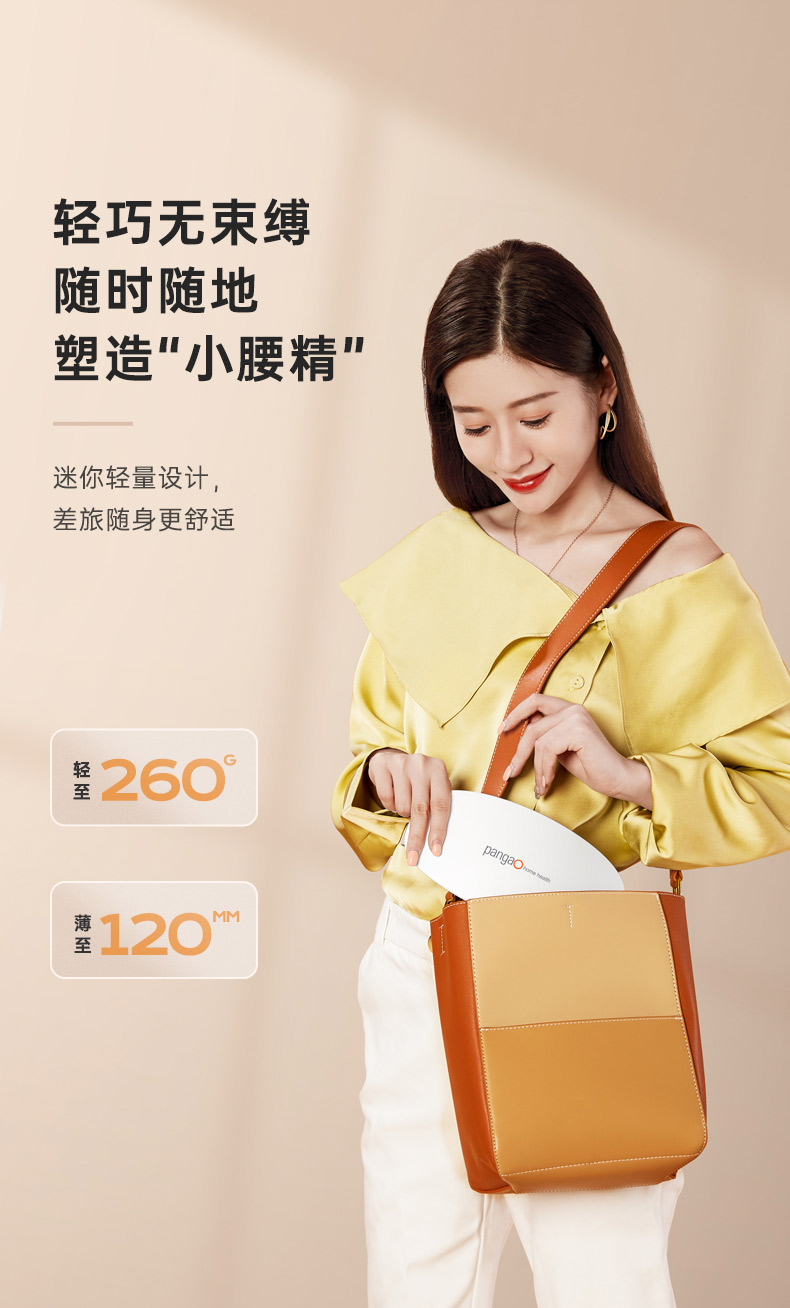 小米生态链"Pangao攀高"出品,小蛮腰款 PG-2643 智能腰部按摩仪,腰腹两用,每天按摩十五分钟,防止腰肌劳损,非常适合久坐人群。