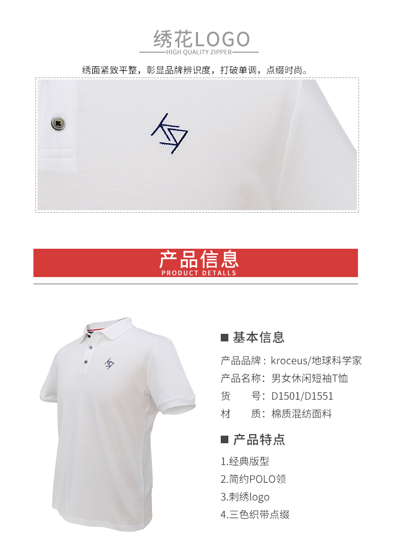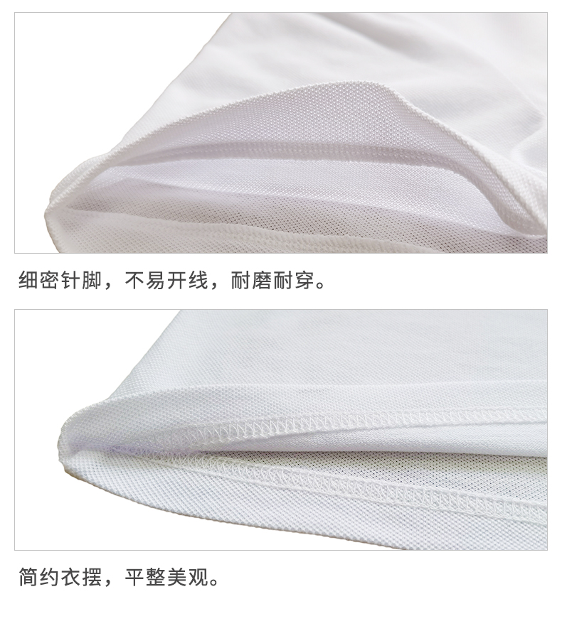 衣面是纯色的,左胸口是刺绣Logo,简约低调;后领是无感印花,不磨肌肤,更舒适;袖口有收束不拖沓。下摆是细密针脚,不易开线,耐磨耐穿,无论是日常休闲或工作都能穿。