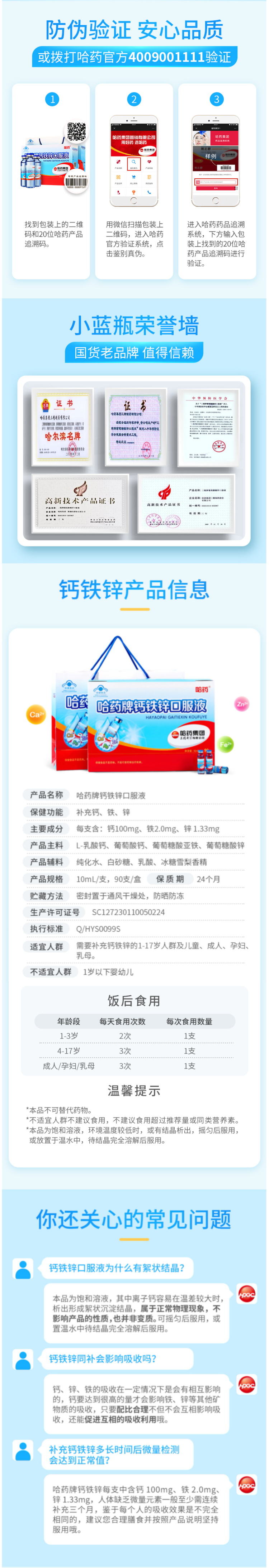 哈药知名品牌实力保障,多年口碑的钙锌同补保健品,还记得经典广告语“蓝瓶的,好喝的!”