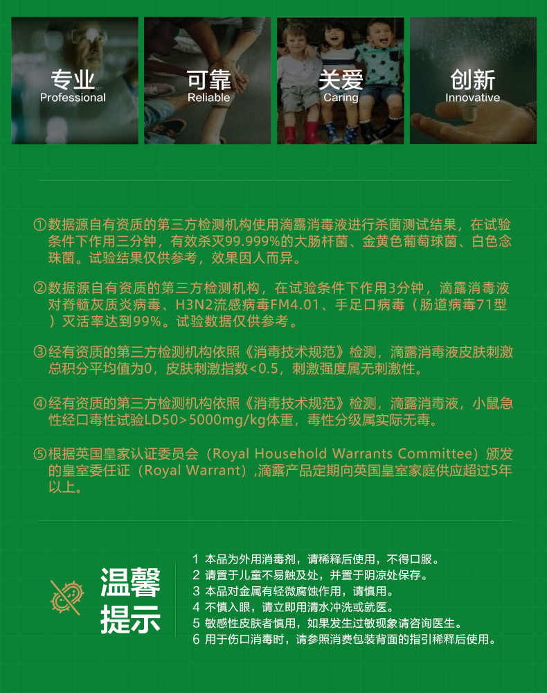 小编个人是比较喜欢滴露的,消毒液很有效,常备小瓶装用来伤口消毒,平常洗衣物的时候可倒20ml左右的消毒液放入洗衣机,能有效消毒。经常清扫卫生的家庭还可以在擦桌拖地时候使用稀释后的消毒液,家庭环境更清洁,尤其是家有小孩、老人、病弱患者等更需要。