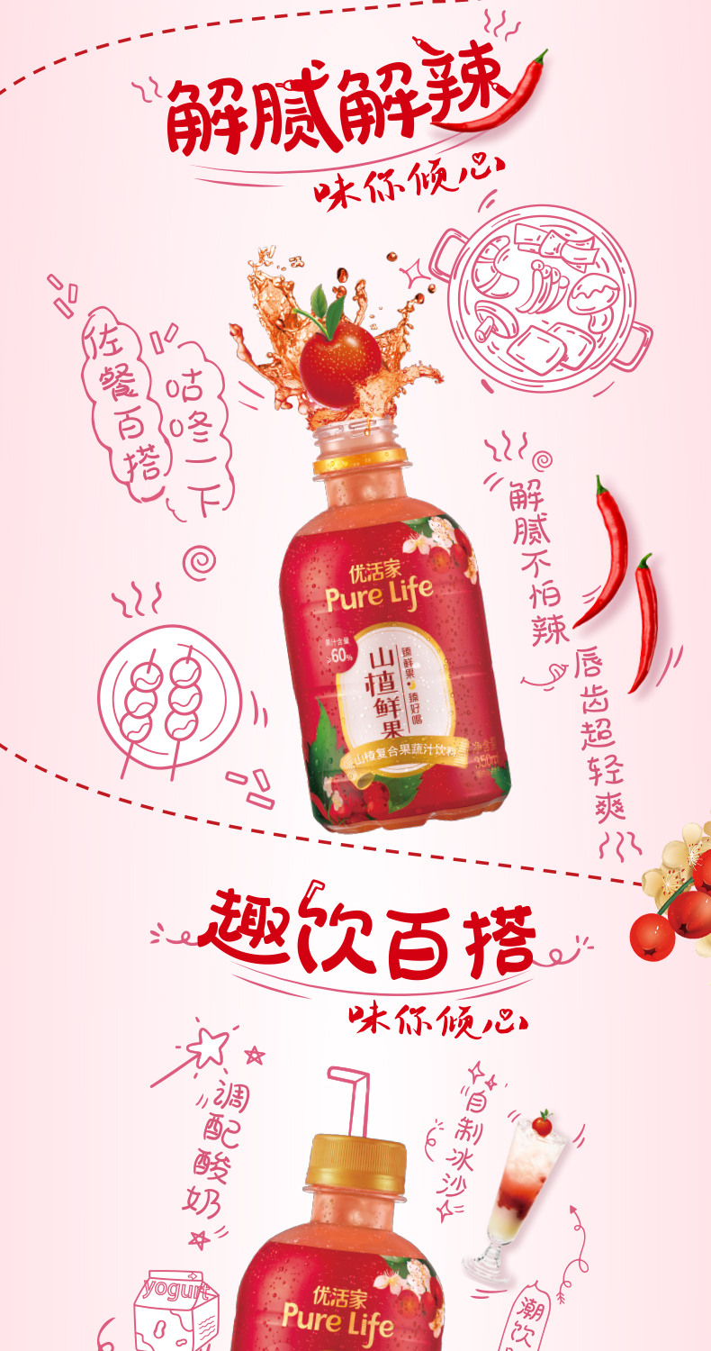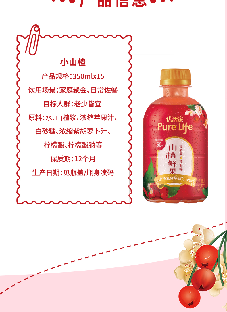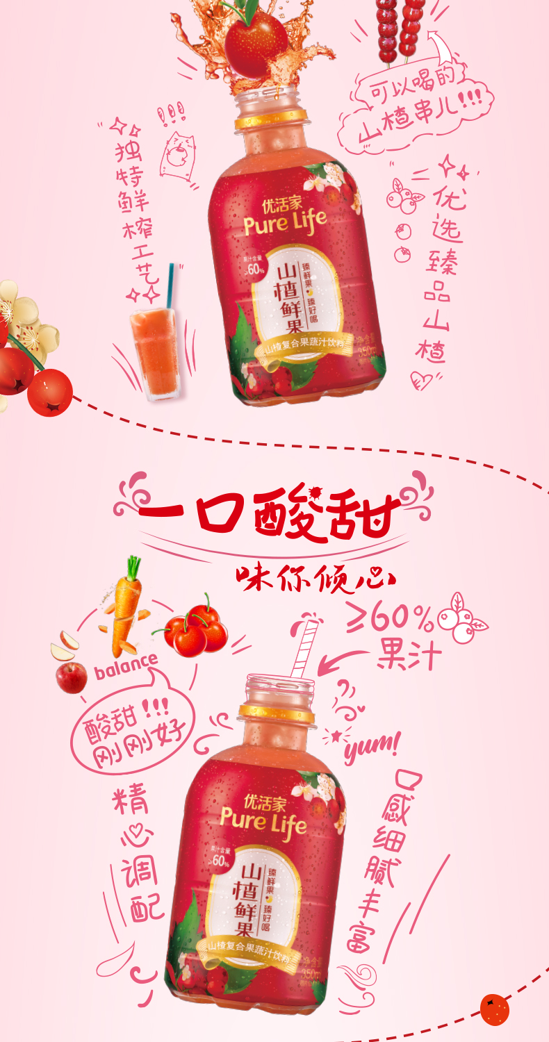 天猫雀巢优活饮品旗舰店65元,可领25元优惠券,实付40元到手,规格为350ml*15瓶,果汁含量60%以上,优选臻品山楂,鲜榨工艺制作,搭配浓缩苹果汁和胡萝卜汁,精心调配,酸甜刚刚好,口感细腻丰富,不管是直接饮用还是佐餐食用,解腻解辣。