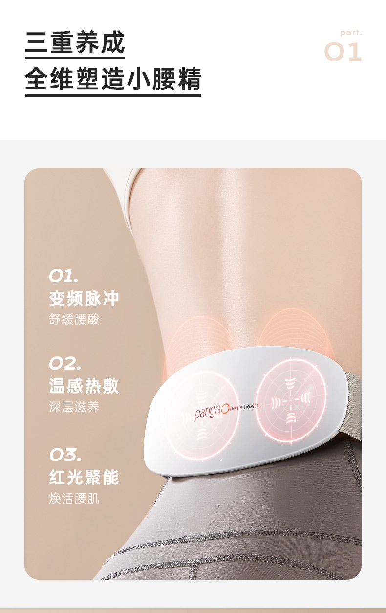 小米生态链"Pangao攀高"出品,小蛮腰款 PG-2643 智能腰部按摩仪,腰腹两用,每天按摩十五分钟,防止腰肌劳损,非常适合久坐人群。