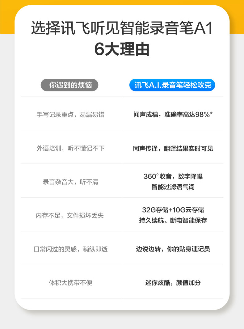 =269元 到手价,手速够快的朋友可以抢半价,3期免息,16G自身存储+10G云存储,录音转写准确率97%以上,而且终身免费转写。