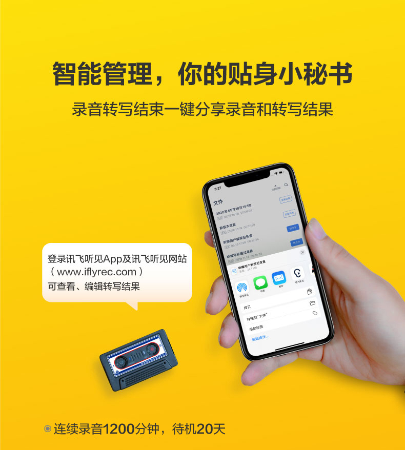 这款科大讯飞的录音笔是绝对当之无愧的办公利器,搭载科大讯飞的AI转换技术,能够实时转写翻译,音转文准确率高达97%,1小时的录音仅需5分钟就能出稿,能够支持12种方言,10种语种转写,内置32G本地存储+10G云存储方案,支持多端管理更加便捷,仅U盘大小,便携又隐形。