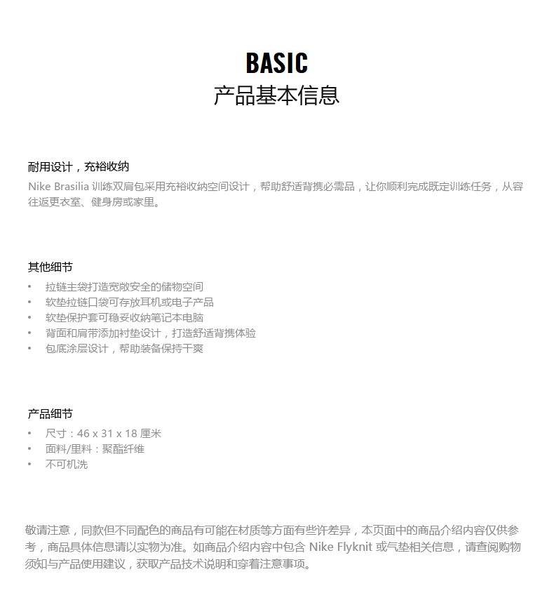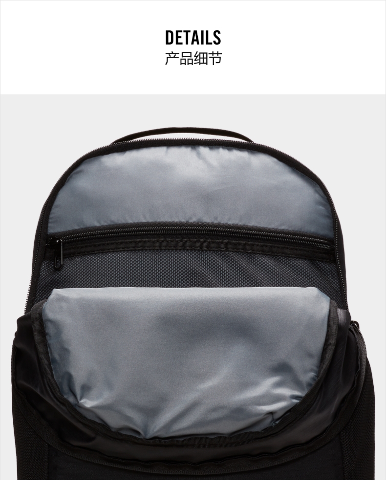 耐克 BRASILIA 训练双肩包采用充裕收纳空间设计,帮助舒适背携必需品,帮助顺利完成既定的训练任务,拉链主袋具有宽敞安全的储物空间,软垫保护套可以稳妥的收纳笔记本电脑和各种电子产品,包底涂层设计,帮助装备保持干爽。