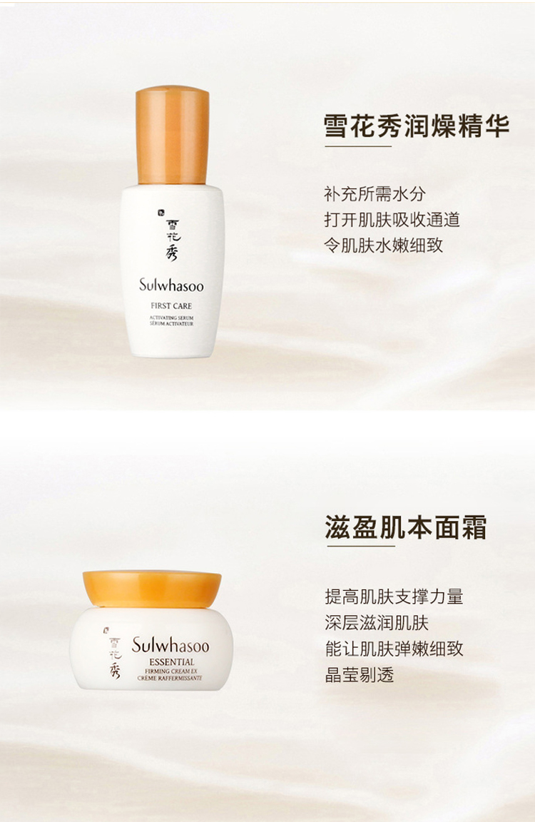 套装包含润颜水 125ml+15ml、润颜乳 125ml+15ml、精华肌底液 8ml,水乳小样、紧致面霜5ml。
