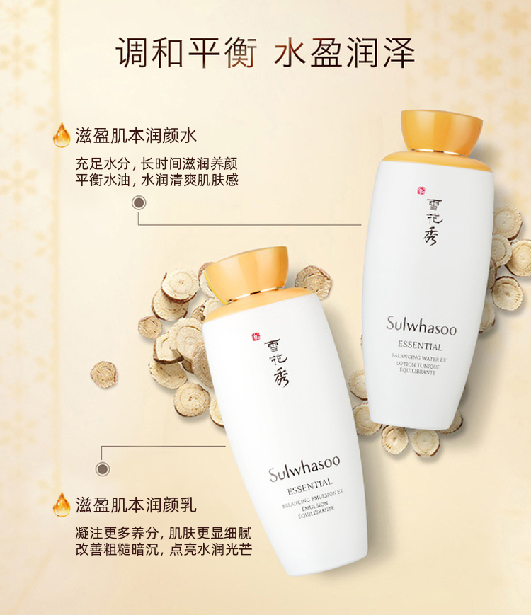 滋盈肌本平衡爽肤水:蕴含滋阴丹、滋阴补卫丹及马齿苋提取物,特别针对干燥肌肤。其独特的啫喱状配方,水盈滋养,深层滋润保湿,能瞬间柔和地被肌肤吸收,并形成薄薄的水份网膜,持续补充水分,令肌肤整日保持滋润。