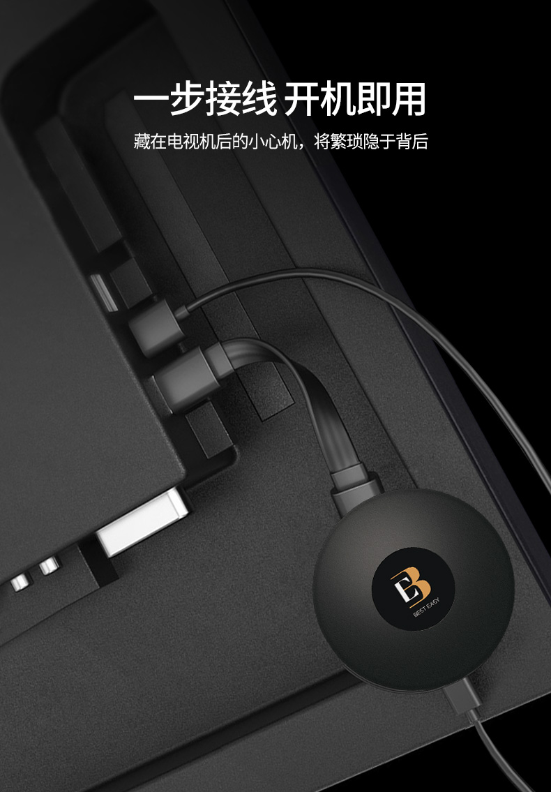 这款最易无线高清投屏器支持苹果/安卓手机、平板、PC到电视、显示器、投影仪等大屏设备的内容投放,可实现影视、直播、游戏、办公的等场景的精彩大屏分享,音质和画面同屏,即插即用。