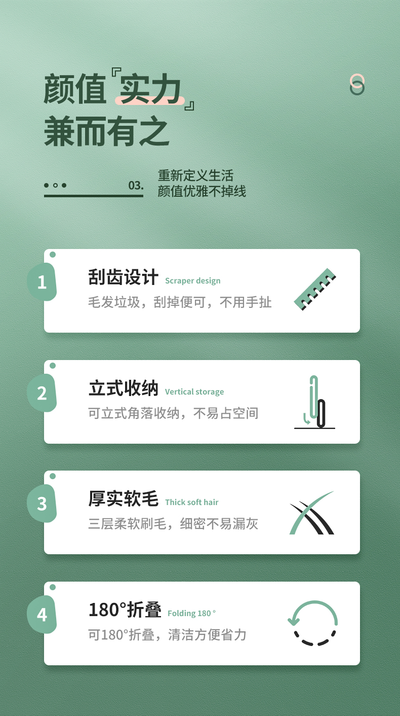 天猫和润家居专营店39.9元,实付39.9元到手,是正价99元的4折;加厚软毛细毛,有锯齿比较方便清除头发等,券后29.9元也是好价。过滤梳齿,毛发棉絮克星,好用不贵,不粘头发神器,扫地不漏灰,可站立,直立式收纳