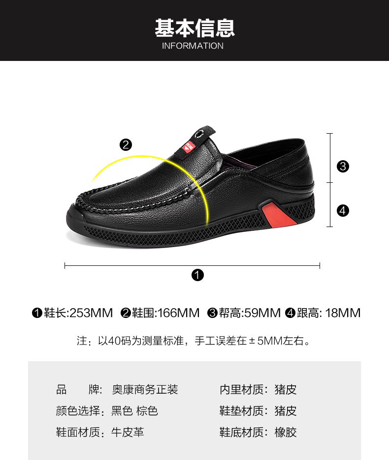 采用优质的牛皮打造,皮质细腻,干爽透气内里,做工细腻平整,内里为猪皮搭配弹力布、超纤,由内而外的舒适体验。树胶鞋底,防滑耐磨。造型简约,适合各种场合。领券链接点此