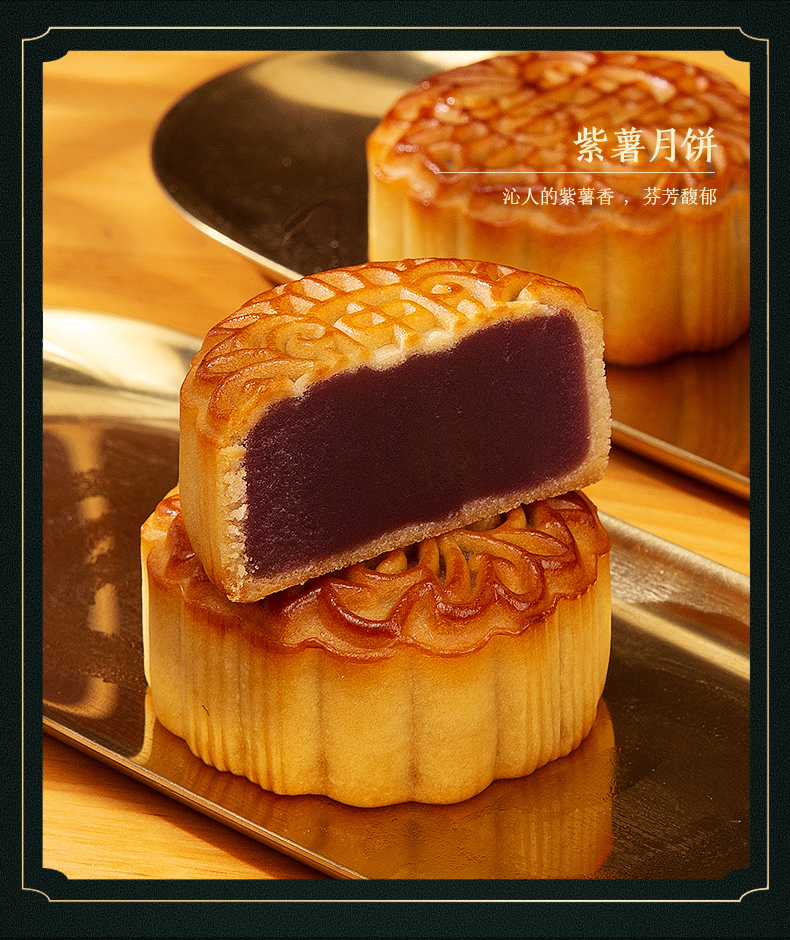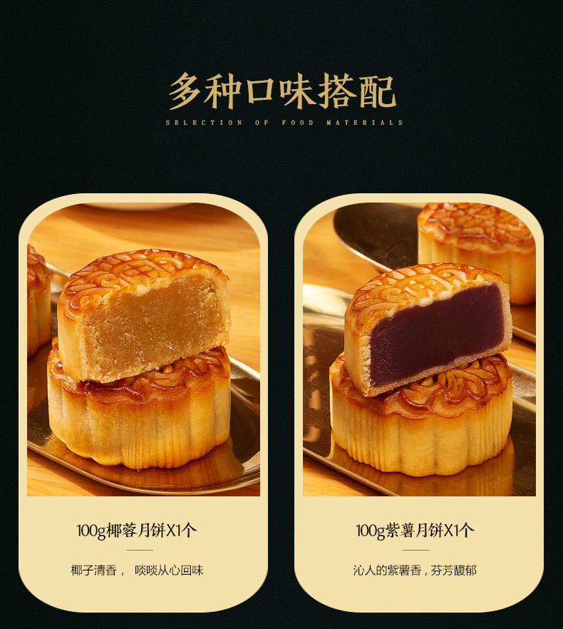 内含:单黄白莲蓉月饼100g、紫薯月饼100g、红豆沙月饼100g、椰蓉月饼100g、精选优质食材,精心制作,正宗广式月饼。