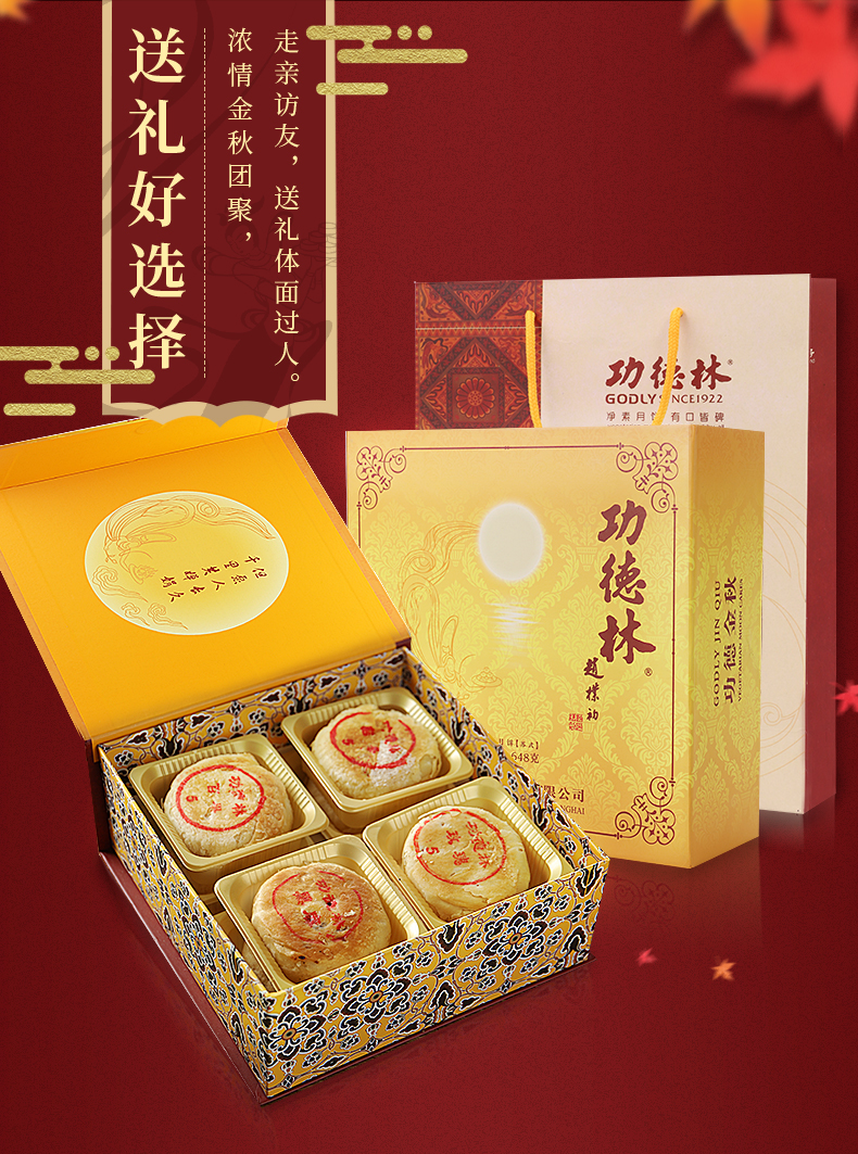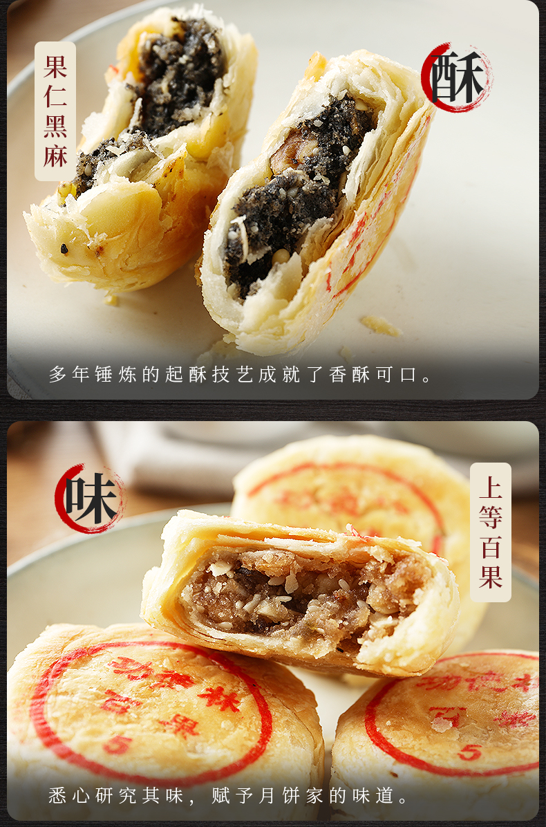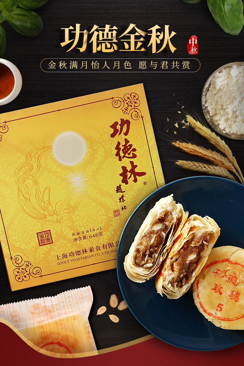 功德林创始于1922年,是一家将近百年历史的著名老字号品牌企业,享有素食鼻祖之称。这款功德林月饼主打“净素”,全部为植物素食,适合过节送老人,珍选核桃仁、瓜子仁、松仁等食材,坚持苏式古法制作工艺,皮层酥松,色泽美观,馅料不腻,老少皆宜。