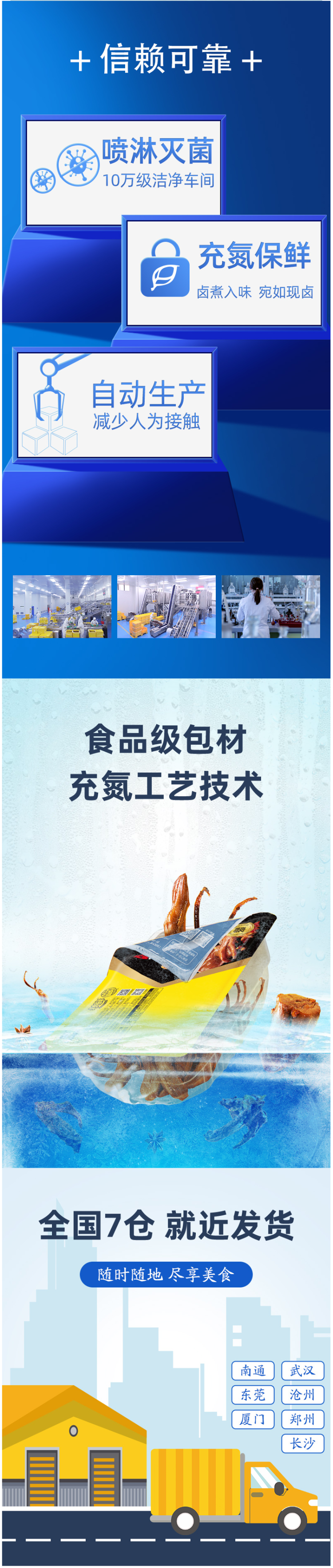 周黑鸭是风靡全国的卤味品牌,口碑度超高。他们家的卤制品,颜色略深,口味甜辣,氮气保鲜,水分更充足一些,不过保质期略短,全程冷运。