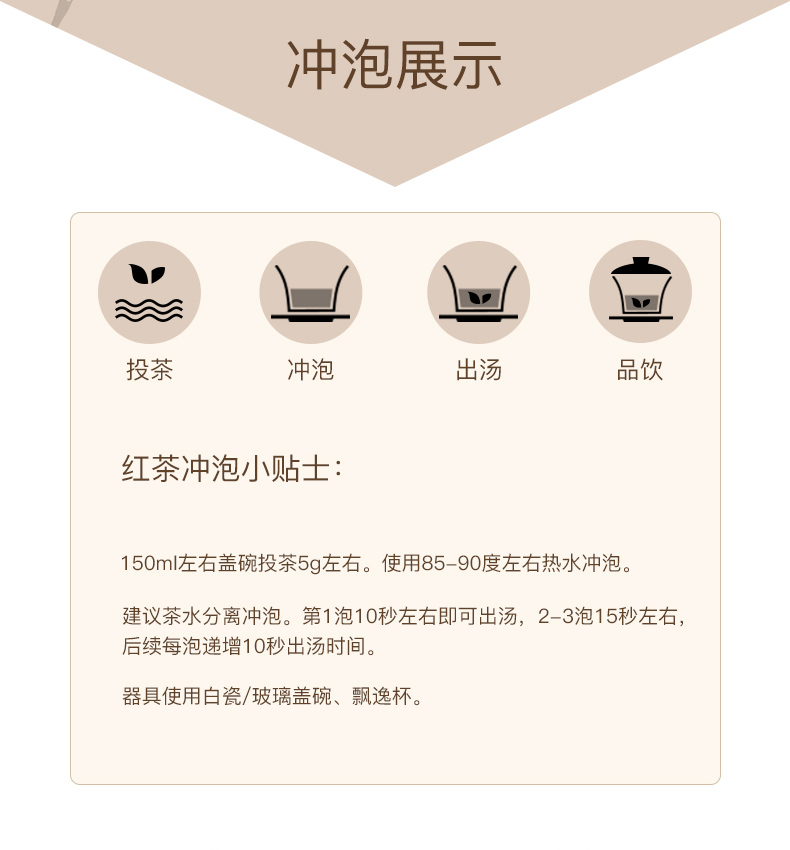 艺福堂 是功夫红茶国家标准参与制定者,这款祁门红茶荣获了19年度世界红茶产品质量推荐金奖,优选祁门黄金产地,国家级茶树良种“槠叶种”(又名祁门种)制作,历经10道制茶工序精心制成,造就独特祁门香,似兰花香、似苹果香、似蜜糖香,干茶条索紧细,锋苗显露,茶汤红艳明亮、金圈显露,叶底细嫩红均,饱满鲜亮。
