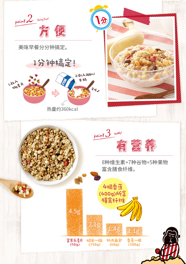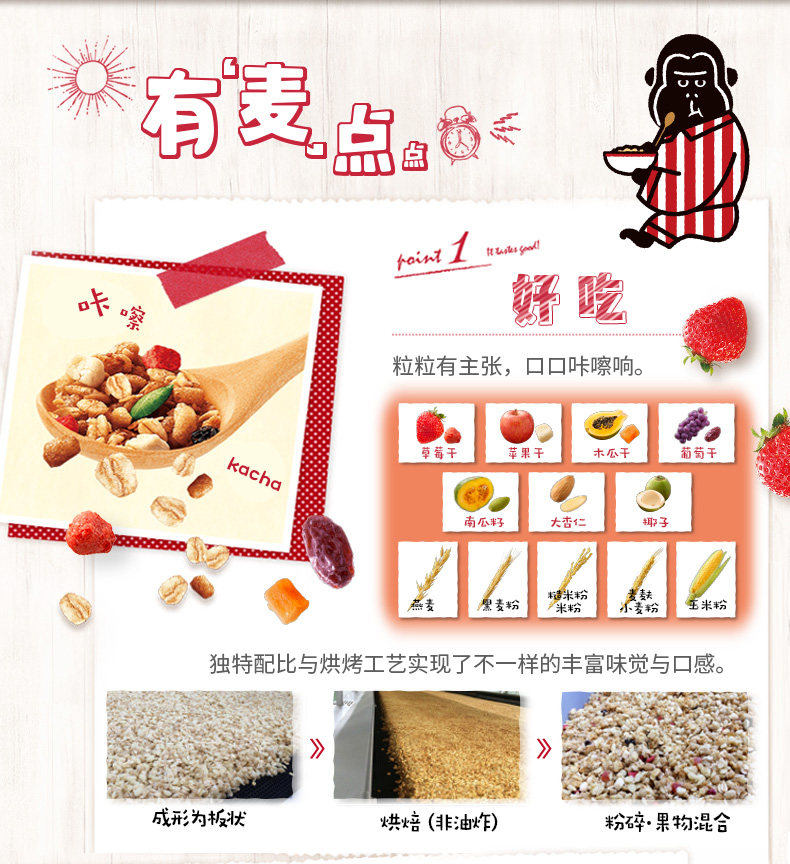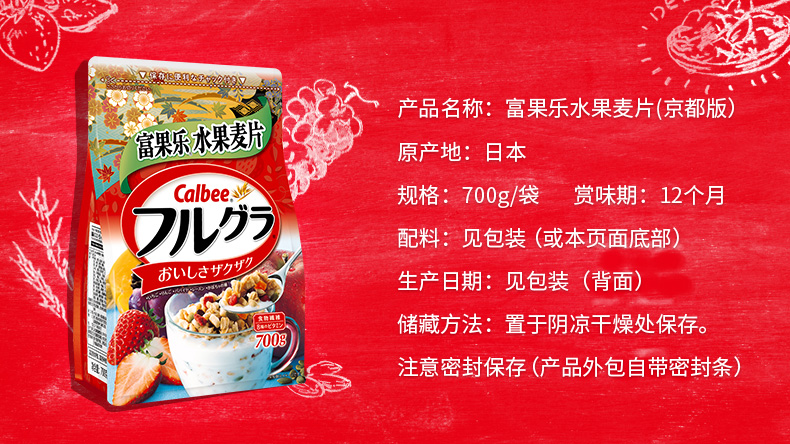 卡乐比的水果麦片非常好吃,口味丰富,可直接开袋干吃,一般作为早午餐泡牛奶、豆浆吃,泡在酸奶里也非常美味。这款麦片生产于日本北海道,非辐射污染区,同时许多原料还是进口的,安全上不用担心,国际官方旗舰店,来源渠道也有保障,可以放心食用。
