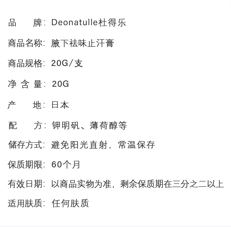 天猫国际进口超市,¥139元 99划算价,-24元 下单立减,-16元优惠券,=99元 到手价,Deonatulle是来自日本的品牌。其拳头产品腋下消臭膏,是日本COSME大赏连续四年销售No.1殿堂级产品。