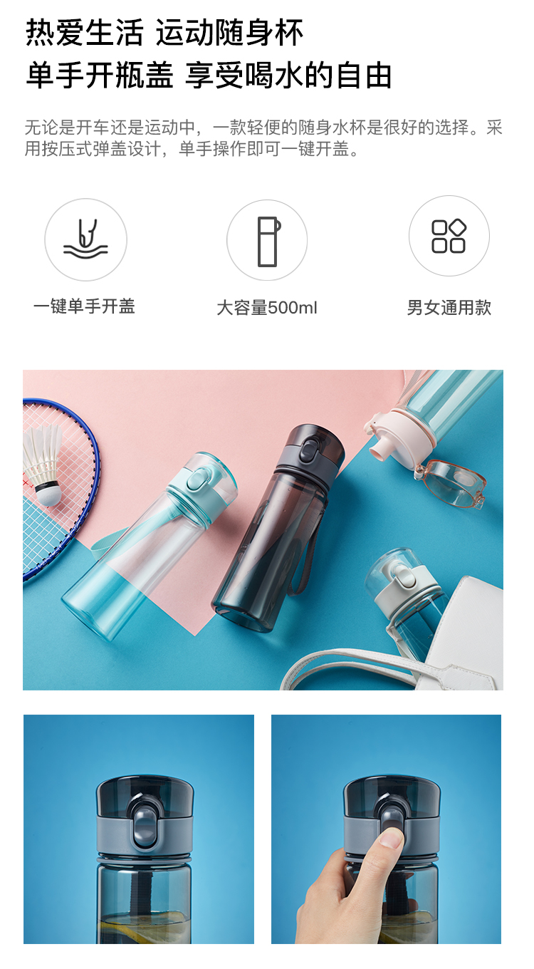 天猫超市0元,可领10元优惠券,实付29.9元到手,是正价39.9元的7.5折;】一键式开启Tritan材质便携运动水杯单手开盖享受喝水的自由!双层锁弹跳盖,大容量500ml多色可选,抗摔不漏水耐高温,哇胶提手不易滑落,夏日必备领券链接点此