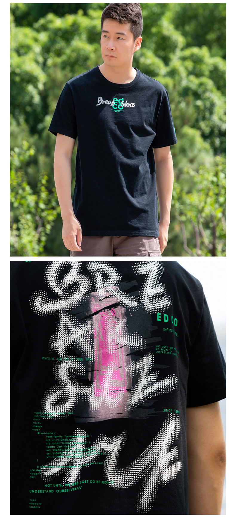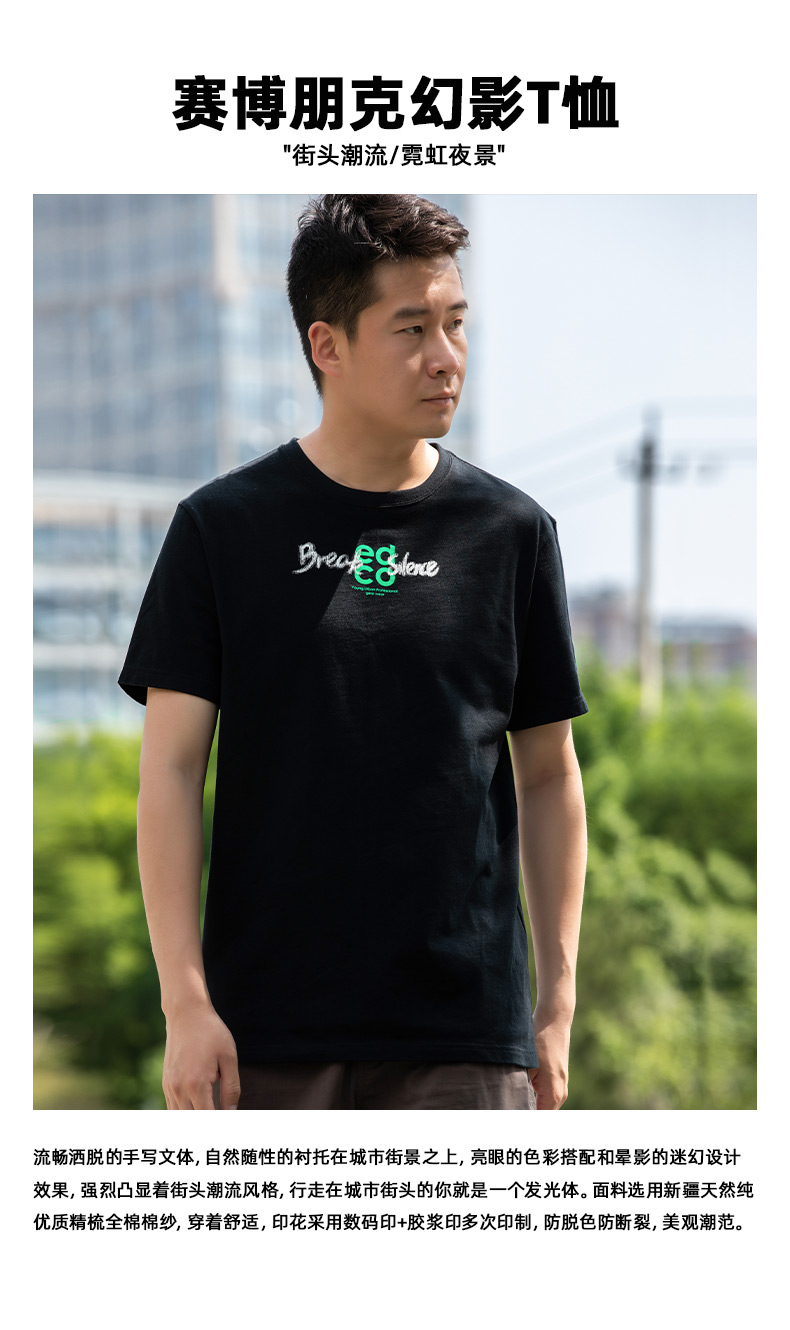 这款艾德克EDCO的赛博朋克幻影印花T恤,中性款男女都可穿。面料是100%新疆精梳棉,柔软亲肤吸湿。