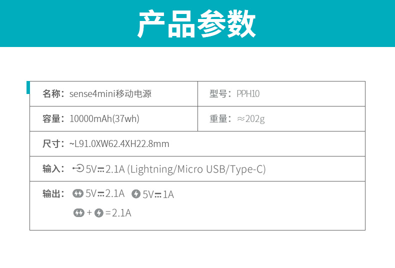 创新3蓄电口设计,无需另外带充电线,安卓、苹果的充电线都能直接给充电宝充电,使用很省心,自带双USB输出口,可同时给2个电子设备充电,表面采用蚀纹工艺,经过喷砂处理,防汗防指纹,握持手感好。