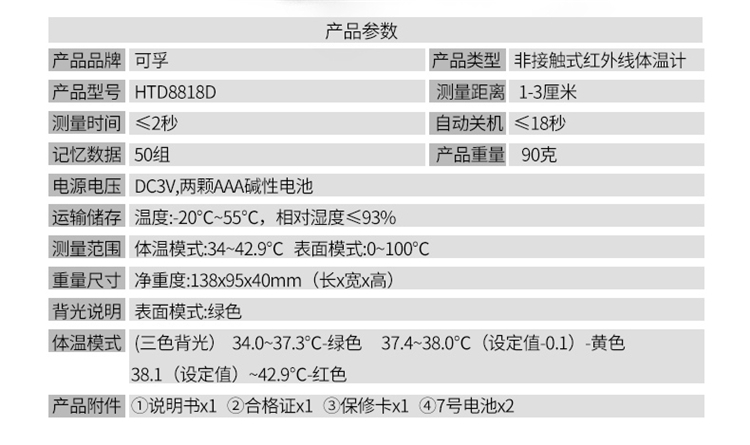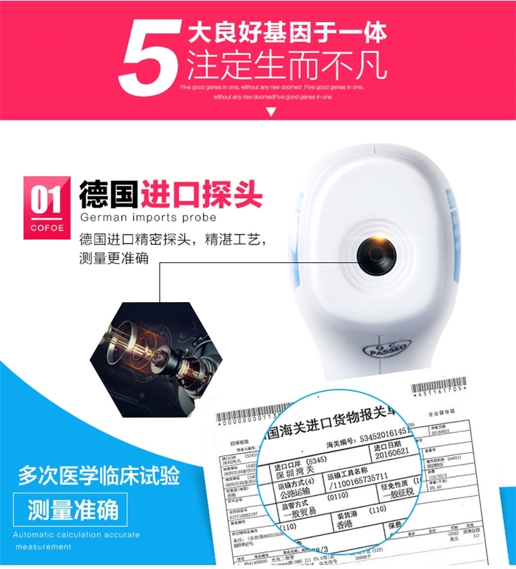 传统的体温计测温慢还十分易碎,水银吸入甚至会引起慢性中毒,多有不方便之处。这款体温计运用红外线,几秒就可快速测温,德国进口精密探头,被动红外接受技术,安全无辐射,3色背光显示提示,更稳妥贴心~