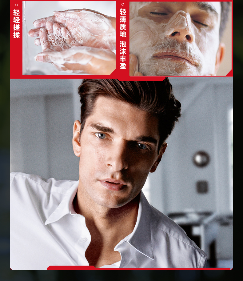 专为男士设计,温和控油,深彻清洁油脂污垢,洗后不紧绷,调整肌肤水油平衡。按压式泵头设计,更加方便卫生。
