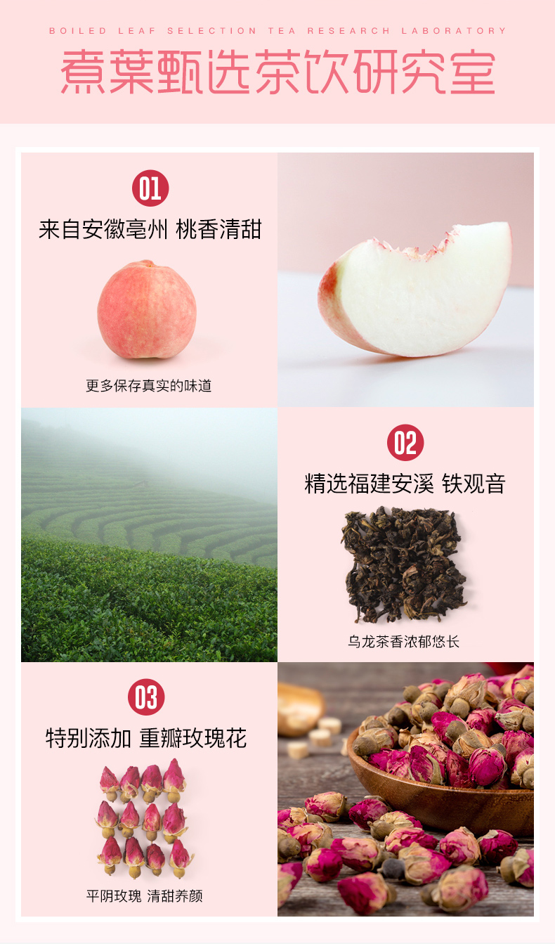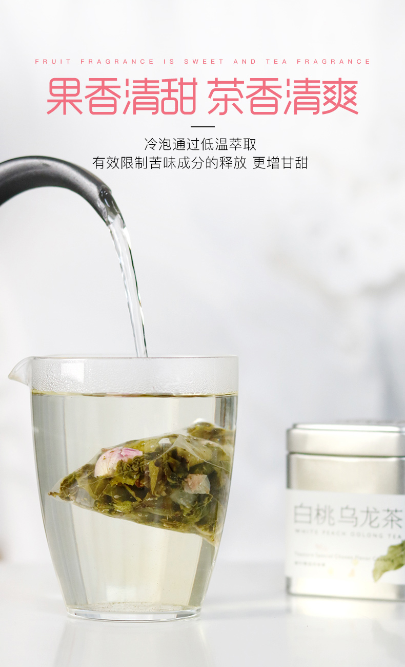 这款煮叶 蜜桃玫瑰白茶,可以热泡也能冷泡,果香清甜浓郁,入口茶香清爽。因为是通过低温萃取而成,冷泡的话能有效限制苦味成分的释放,更增甘甜。