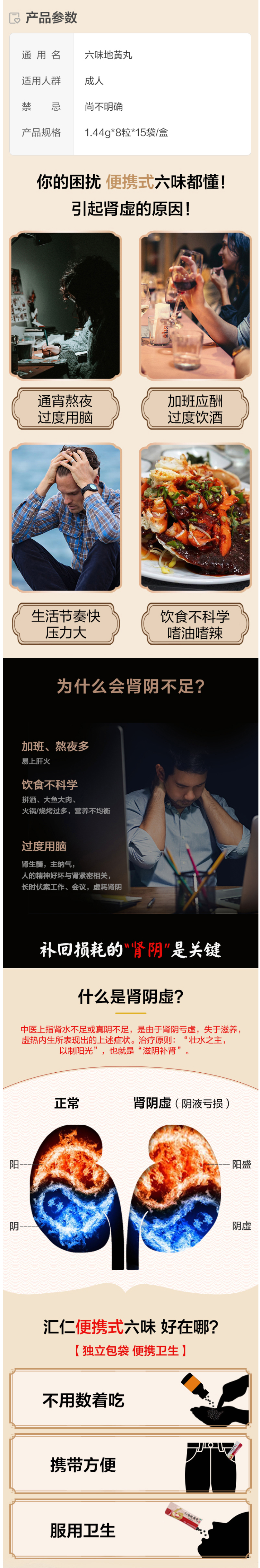 汇仁六味地黄丸是汇仁专为男性设计,用于补充“肾透支”、“性透支”的补肾中药。适用于腰酸背疼,夜尿频多,肾虚腰酸等肾亏的症状。因为价格较贵,所以有很多仿冒的现象,购买时一定要选择靠谱渠道,不要只贪便宜,官方旗舰店发货,品质有保障。