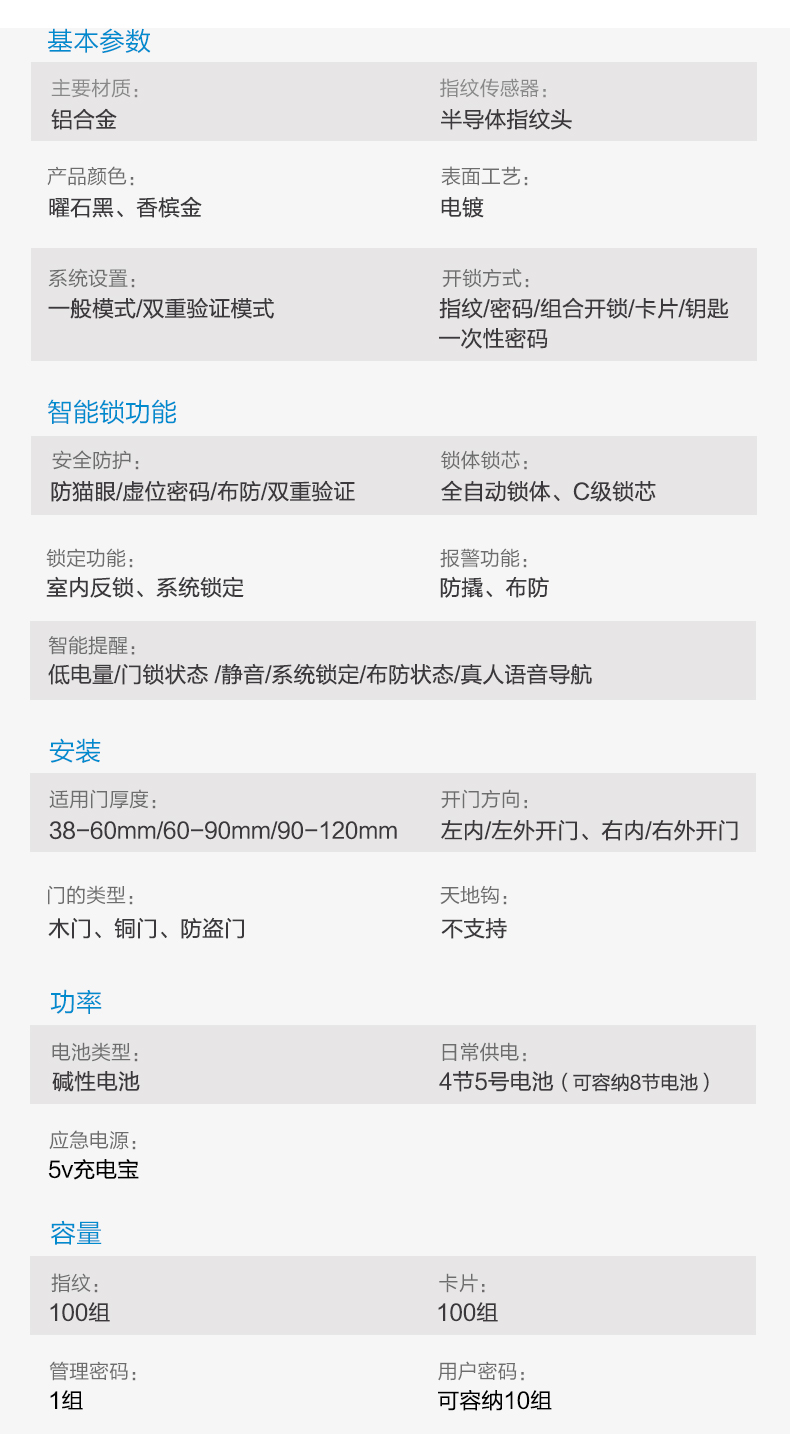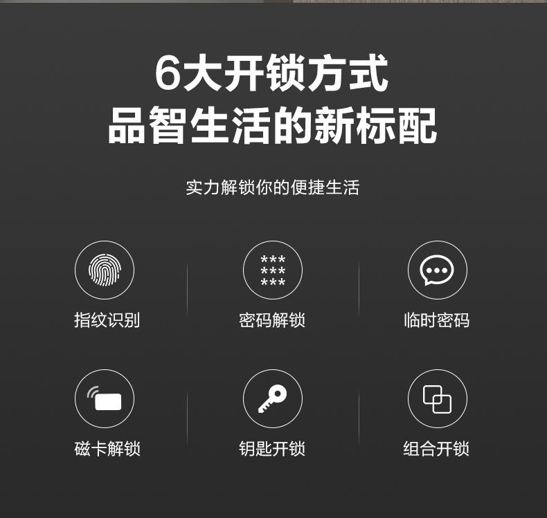 具有指纹、密码解锁、临时密码、磁卡解锁、钥匙开锁、组合开锁6种开锁方式。