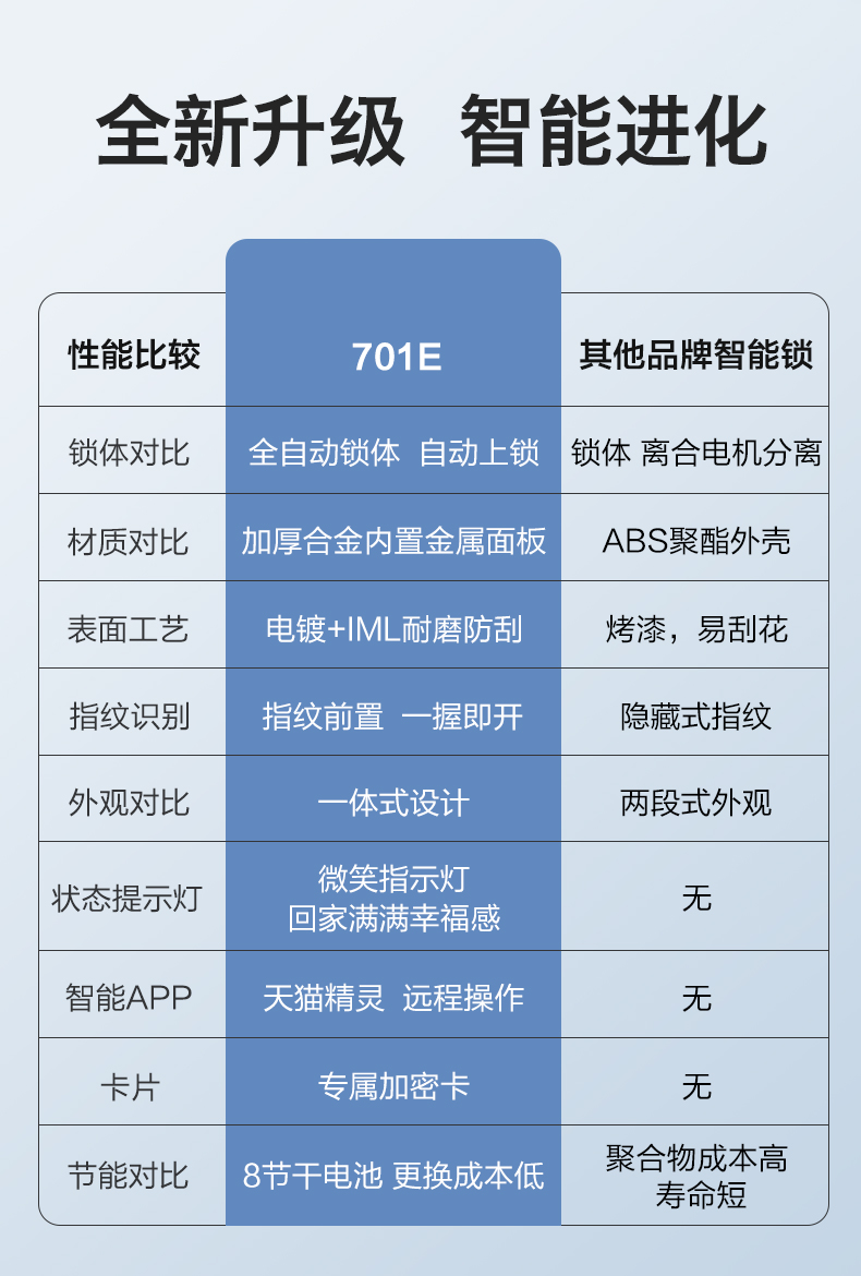 5 防暴力拆卸报警、低电量报警、布放报警、锁舌异常报警、多重报警功能守护居家安全。