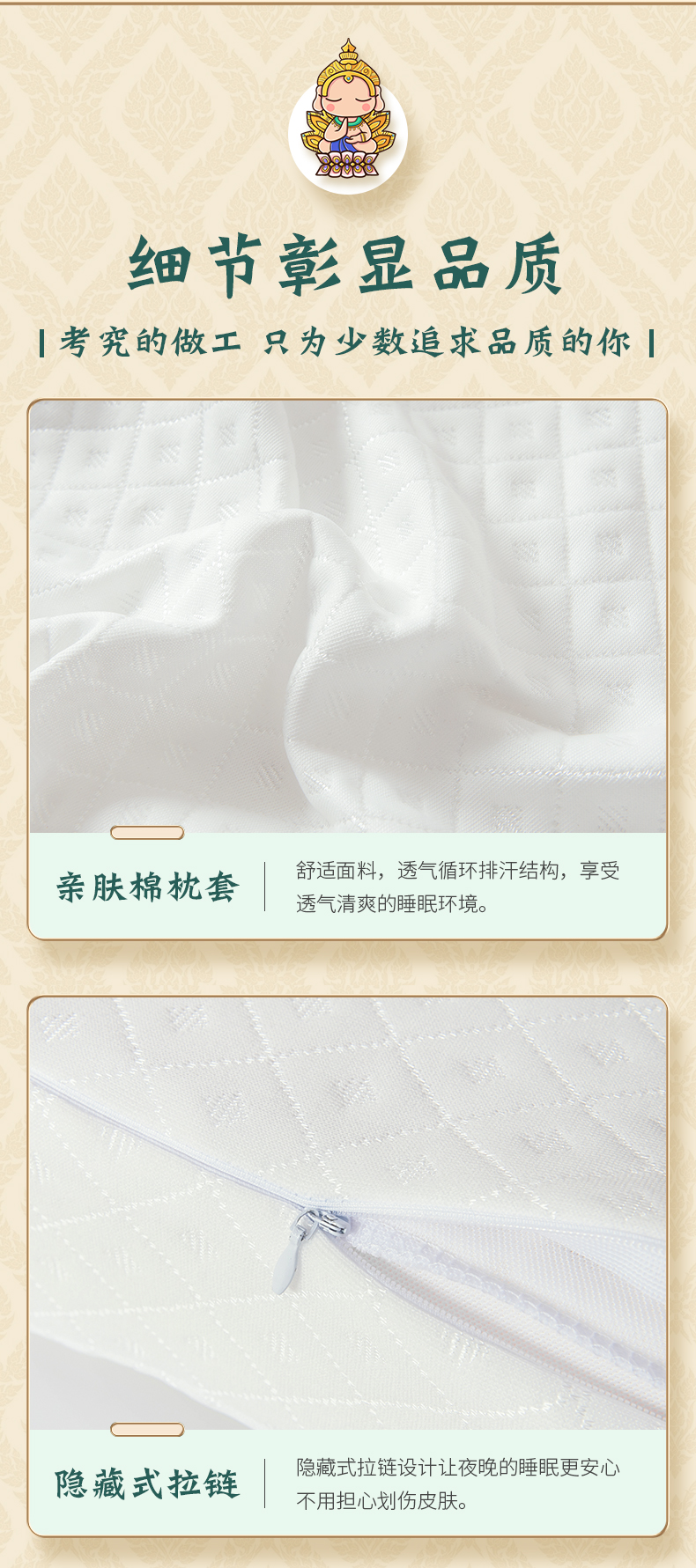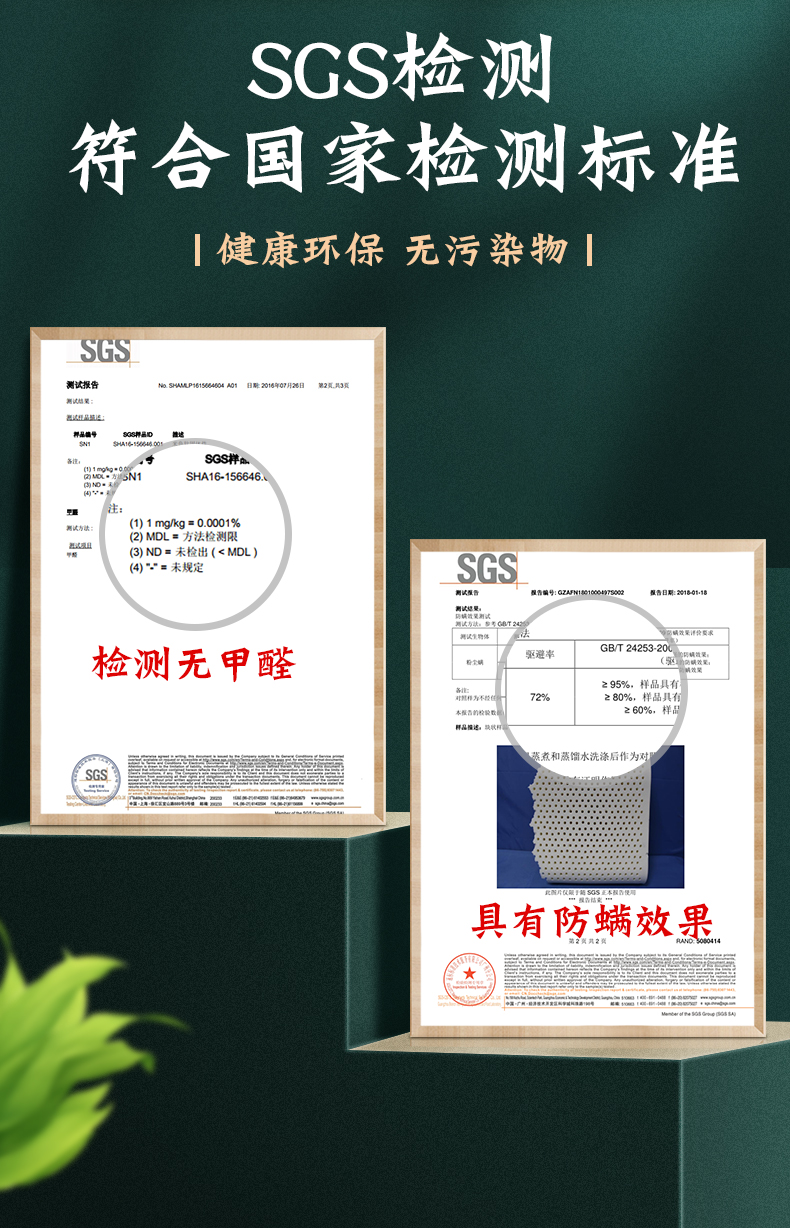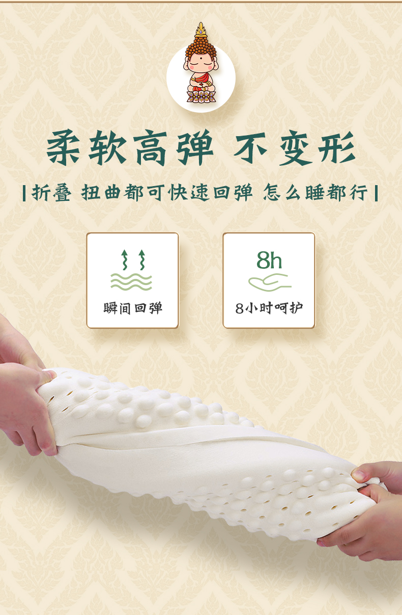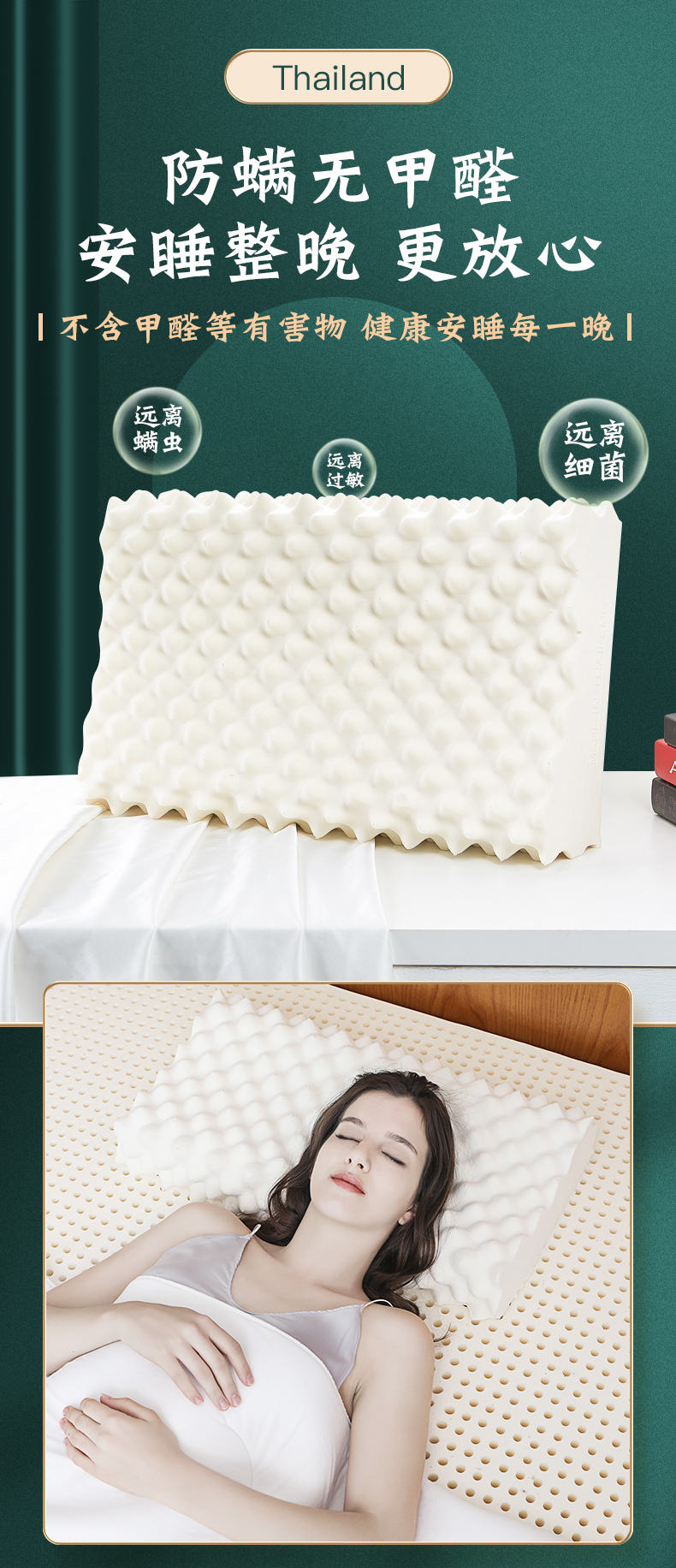 第一款小款波形枕此价,泰国原装进口天然乳胶、90%乳胶含量,不含合成胶,甲醛等有害物质,物理发泡工艺,一体成型,蜂窝结构,柔软回弹,舒适透气,高低枕设计,适合不同睡眠习惯。已通过ECO认证、SGS检测等四大权威认证。