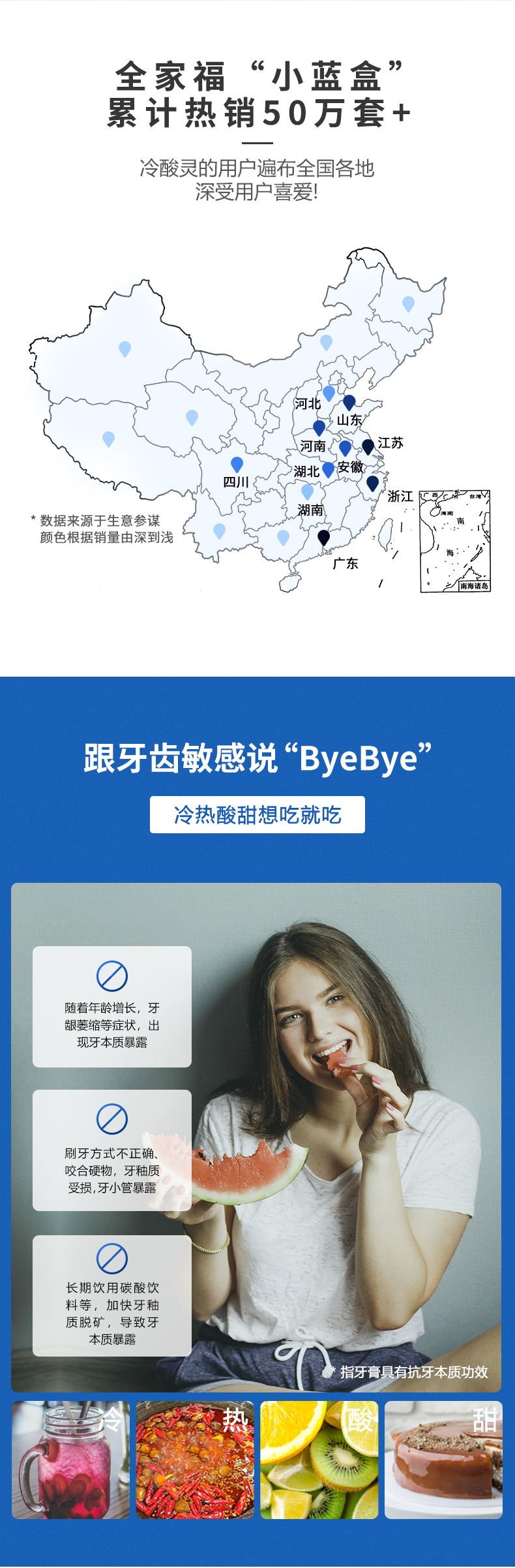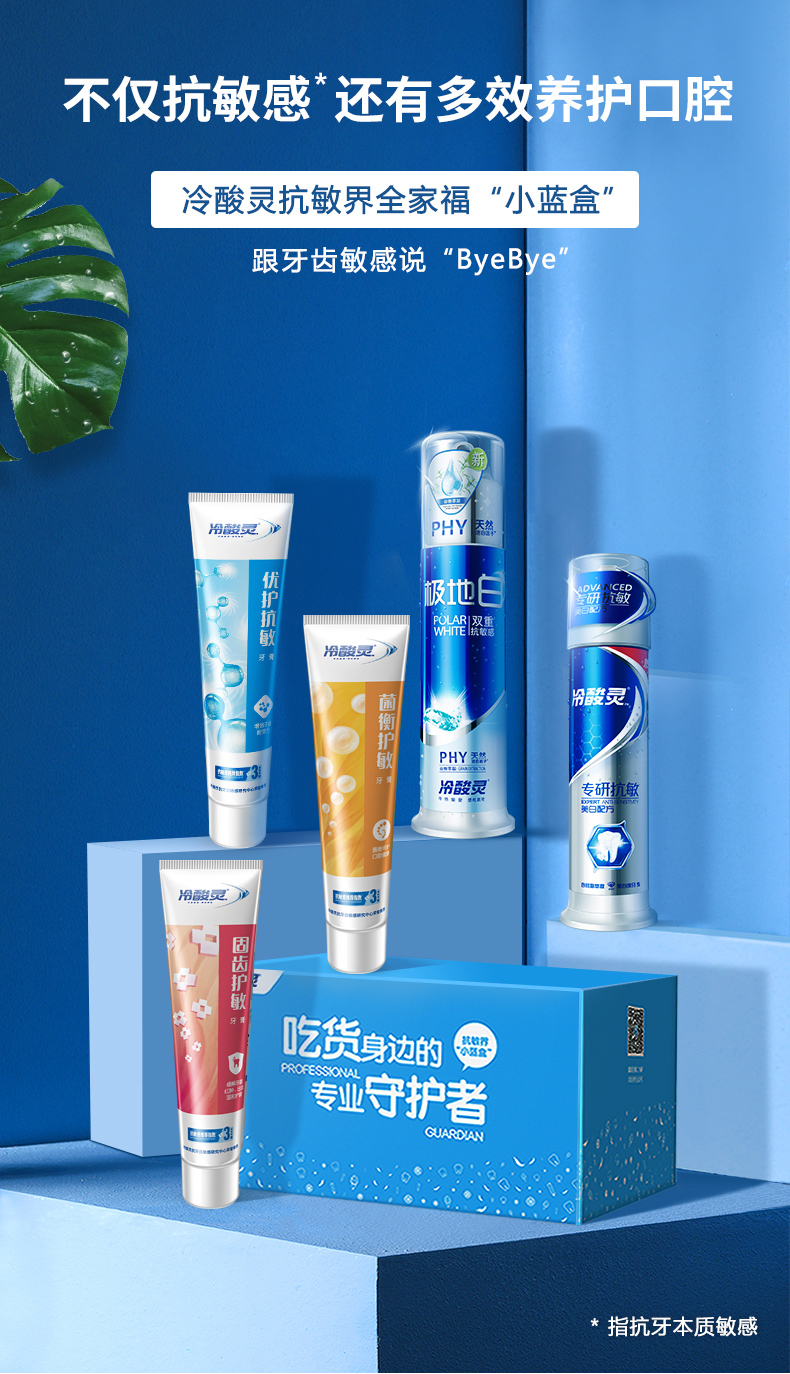 这款冷酸灵 抗敏洁白 多效组合牙膏套装,采用双重抗敏感中国发明专利配方,有效舒缓食物引起的牙齿敏感和酸痛现象。