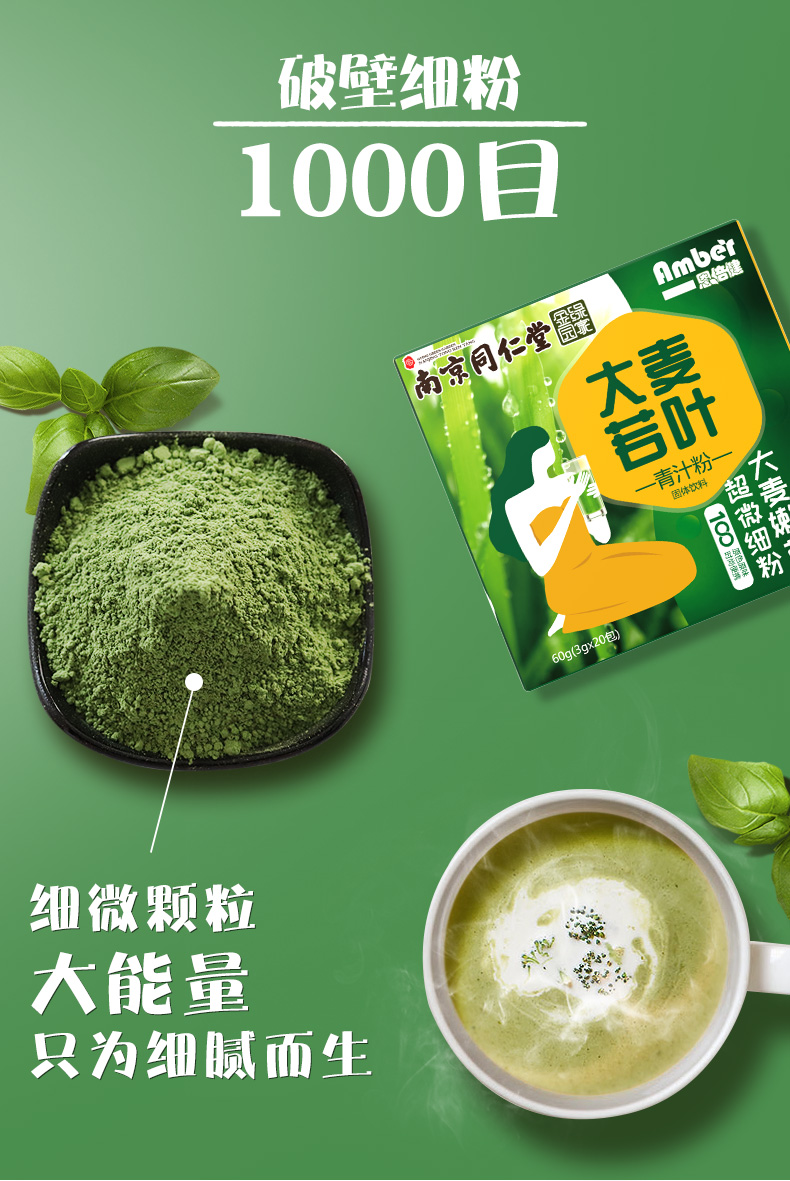 大麦叶粉是“碱性食品之王”,含有大量的维生素C、β—胡萝卜素和抗氧化酵素,可改善酸性体质,净化血液、促进新陈代谢,具有增强肌体抗感染、抗菌、镇痛等作用。麦嫩苗汁液是世界上单项资源中营养物质含量最丰富,最均衡,最适合人体细胞需要的物质,是营养细胞,修复细胞创伤的最佳选择。