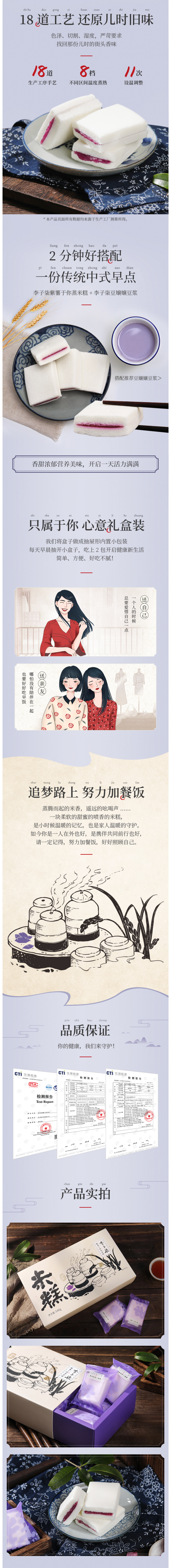 米糕里面夹着软软糯糯的紫薯,米香扑鼻,吃起来的口感柔软蓬松,清甜不腻口,细腻软滑,锁鲜氮气小包装,食用也更方便。