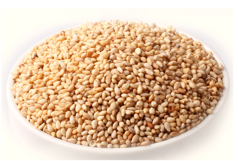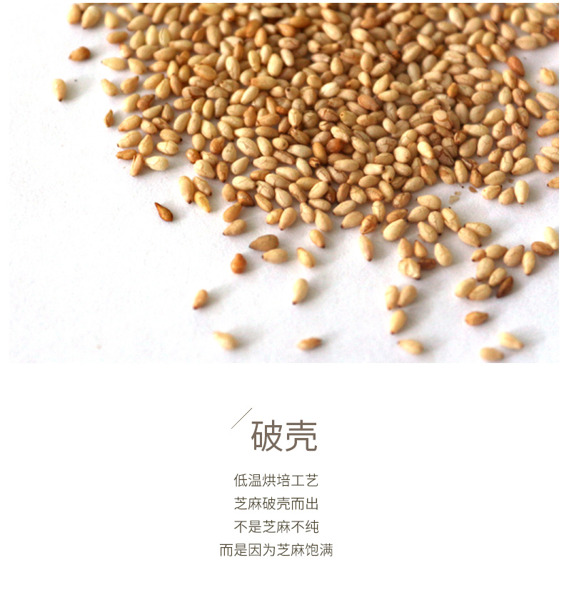 采用五筛三去石的工艺先对芝麻进行筛选然后进行色选,再经水洗后对原料进行低温烘焙,不久后芝麻就破壳而出,饱满鲜香。