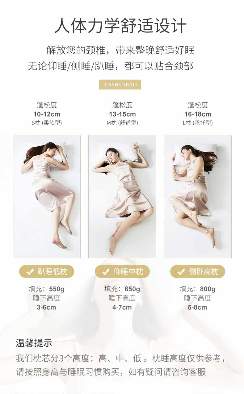 第三款:中枕 填充650g 蓬松高度13~15cm/水下高度4~7cm 售价79元,