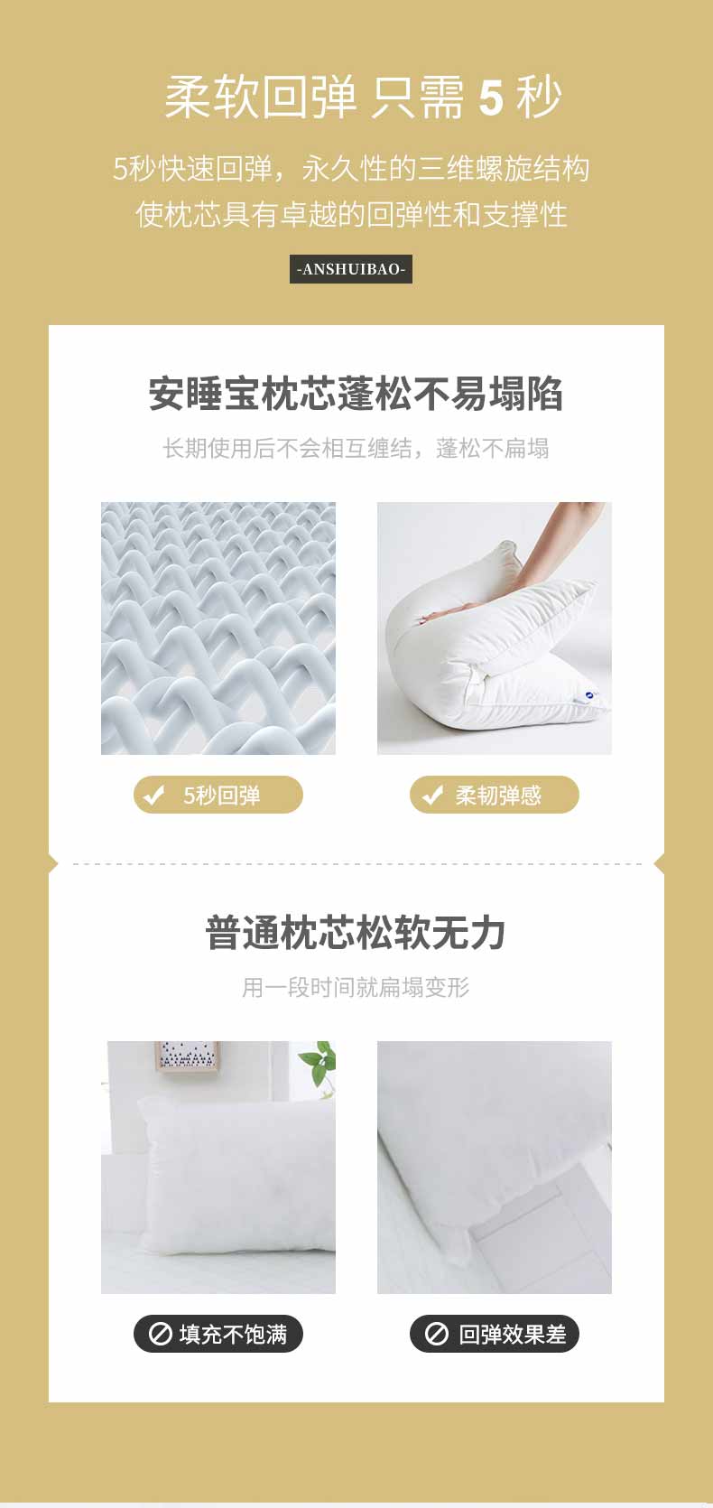 这款枕头内里填充的是杜邦索罗那Sorona纤维,呈螺旋状弹簧结构,回弹性和支撑性都非常好,而且不易变形,即使长时间受压和水洗烘干后,仍具有很好的保型性,经过杜邦仙护盾(Silvadur)技术处理,能有效抑制细菌,带来全天清新的使用感受。