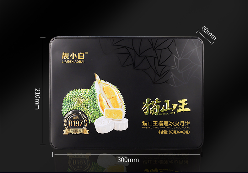 天猫靓小白旗舰店328元,下单立减60元,可领80元优惠券,实付188元到手,猫山王榴莲冰皮月饼 高档礼盒,一盒六枚,附带餐具,中秋送礼佳选。