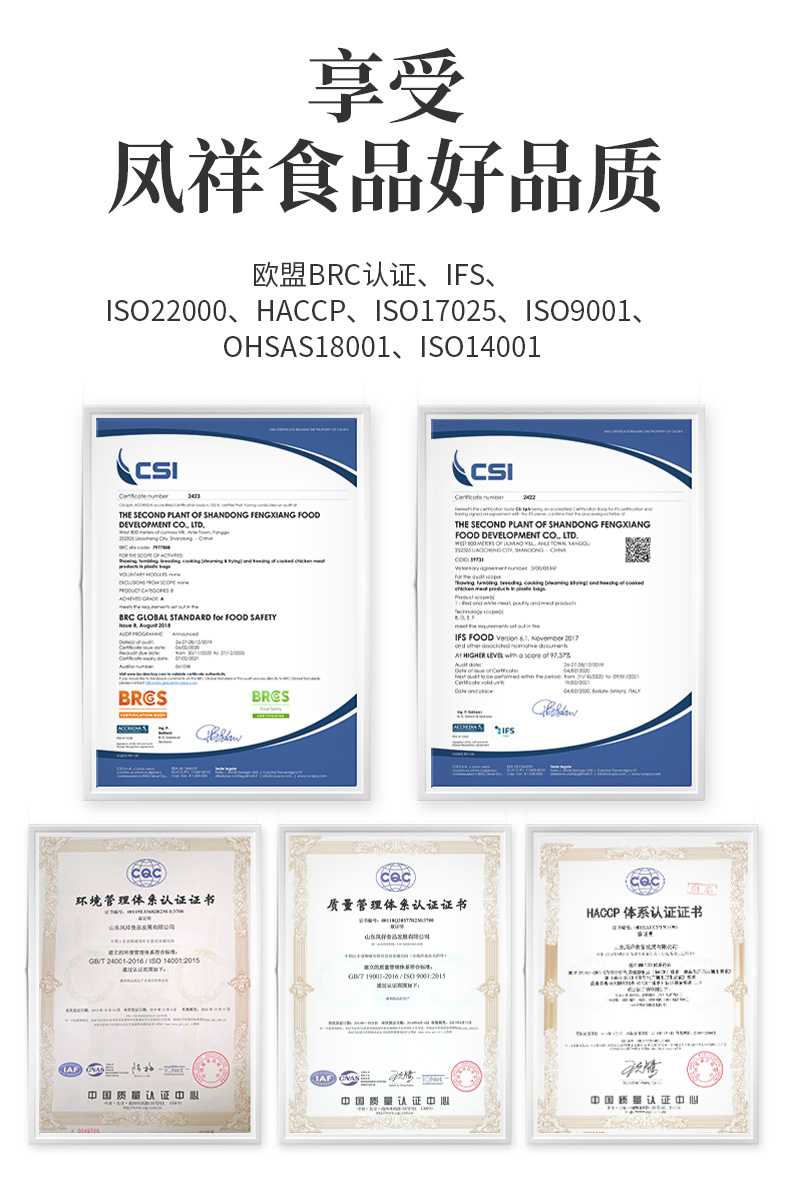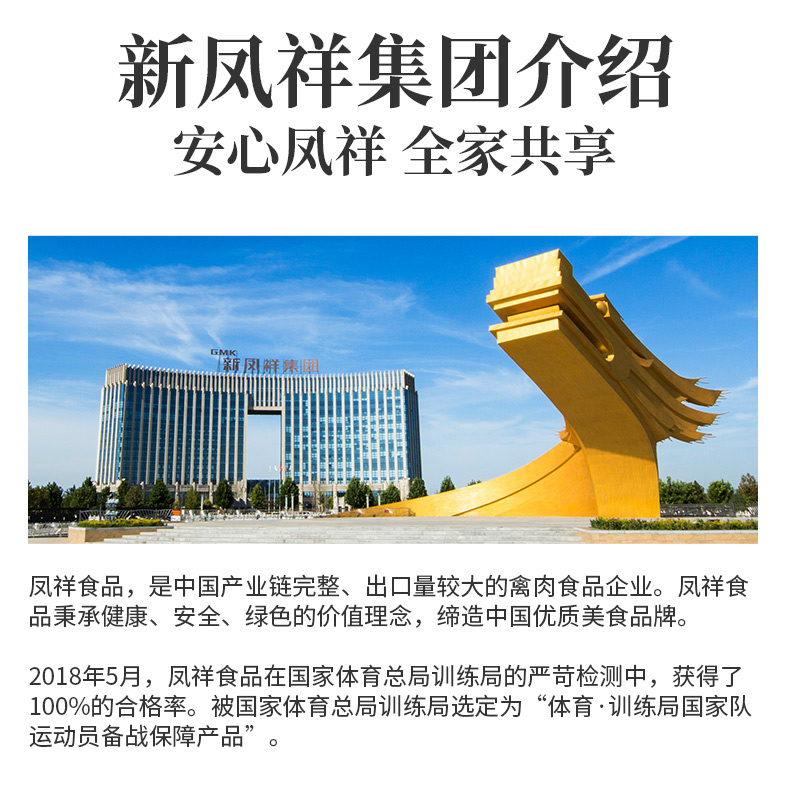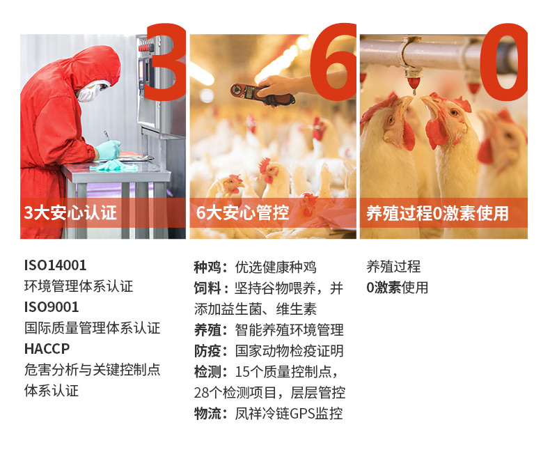 凤祥是肯德基、麦当劳等连锁集团的战略供应商,同时也是国家队运动员的备战保障产品。坚持内外销“同线同标同质”,严格按照国际标准质量管理体系,实现了质量可追溯。通过自养自宰一体化经营,构建了“从农场到餐桌”全产业链的食品安全体系。