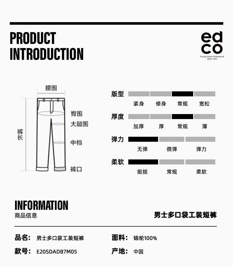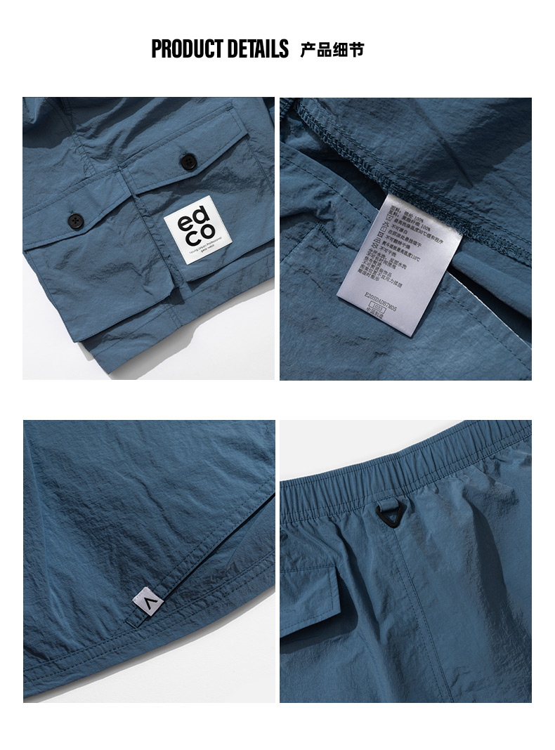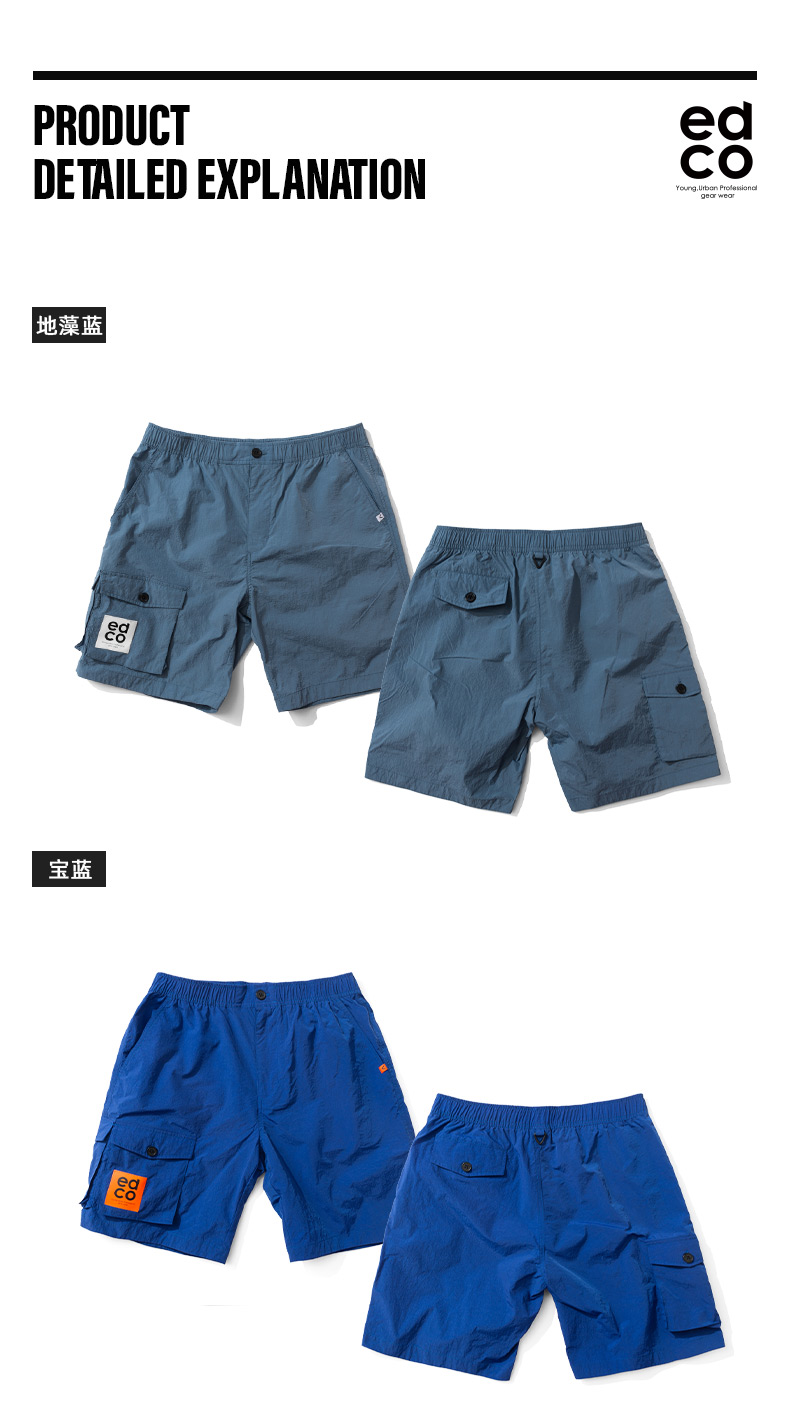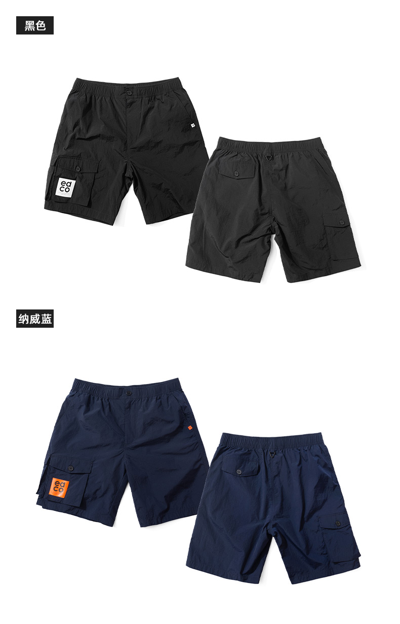 这款艾德克EDCO男透气速干短裤,是五分裤长短,使用100%速干尼龙面料,能加快体表汗气挥发,清爽透气、耐磨抗撕裂。工装风,口袋较多,弹力松紧裤腰。