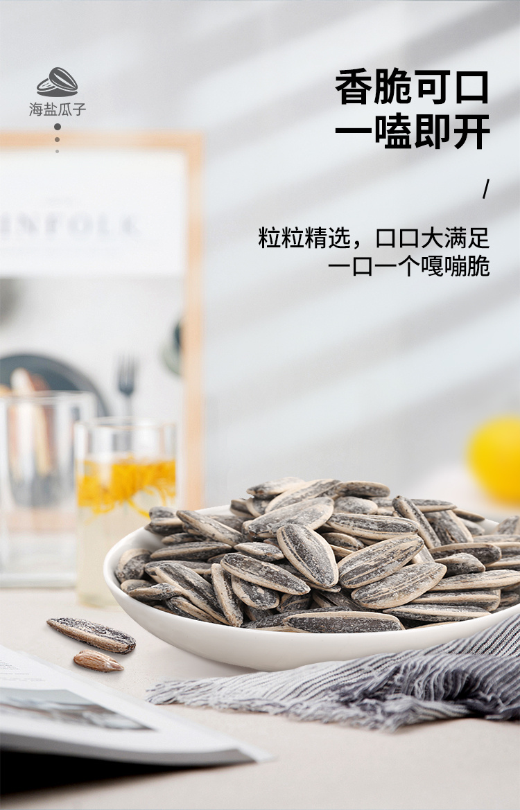 妙不可盐,一嗑倾心,精选饱满葵花籽颗粒,香脆可口,颗颗饱满,粒粒酥脆。