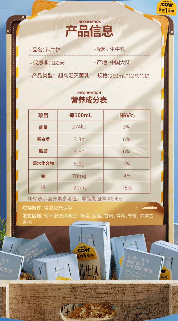 这个纯奶配料表里面只有“生牛乳”,澳洲进口荷斯坦纯种奶牛,纯奶味道纯,无任何添加