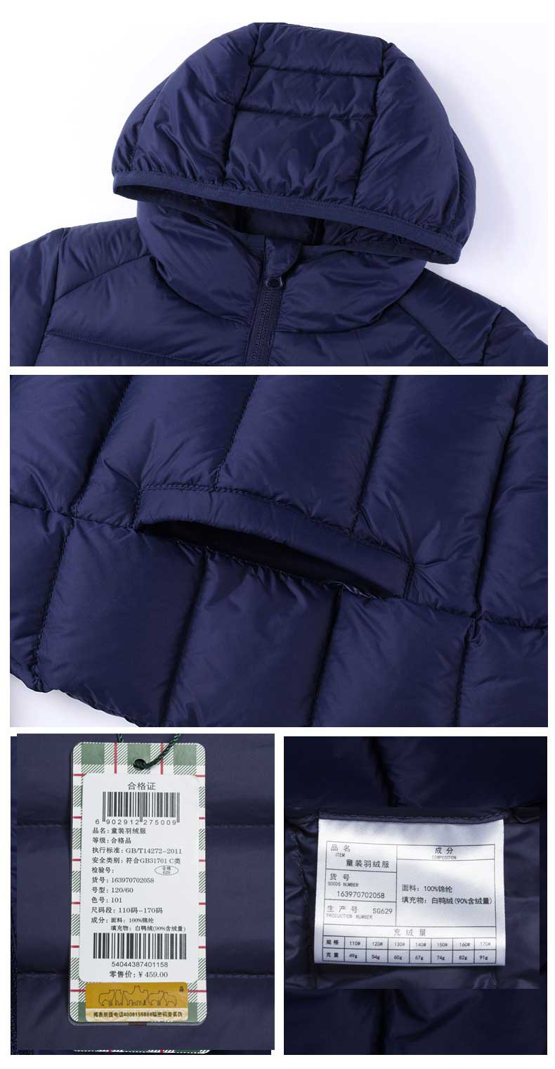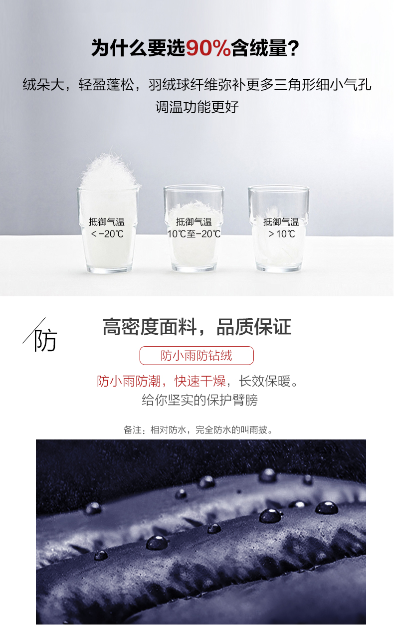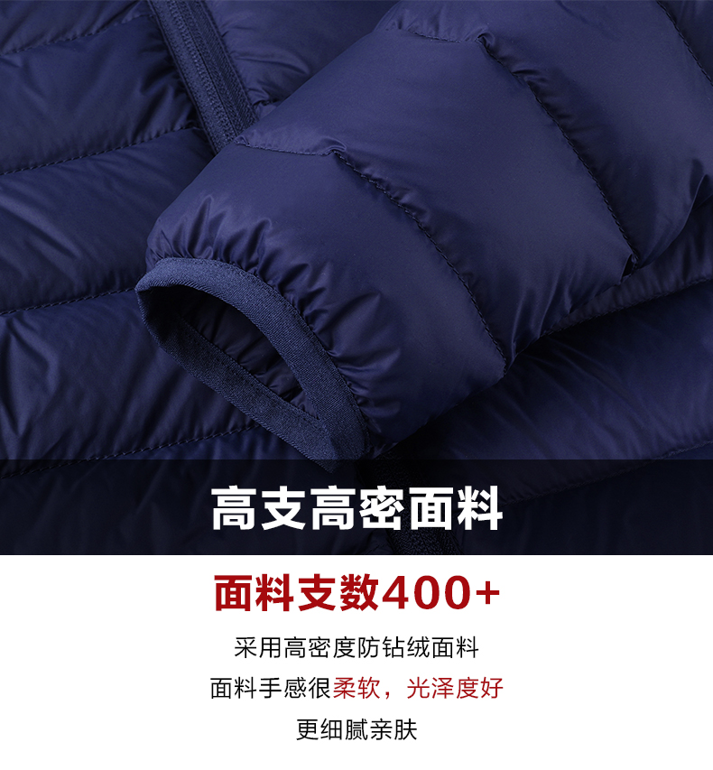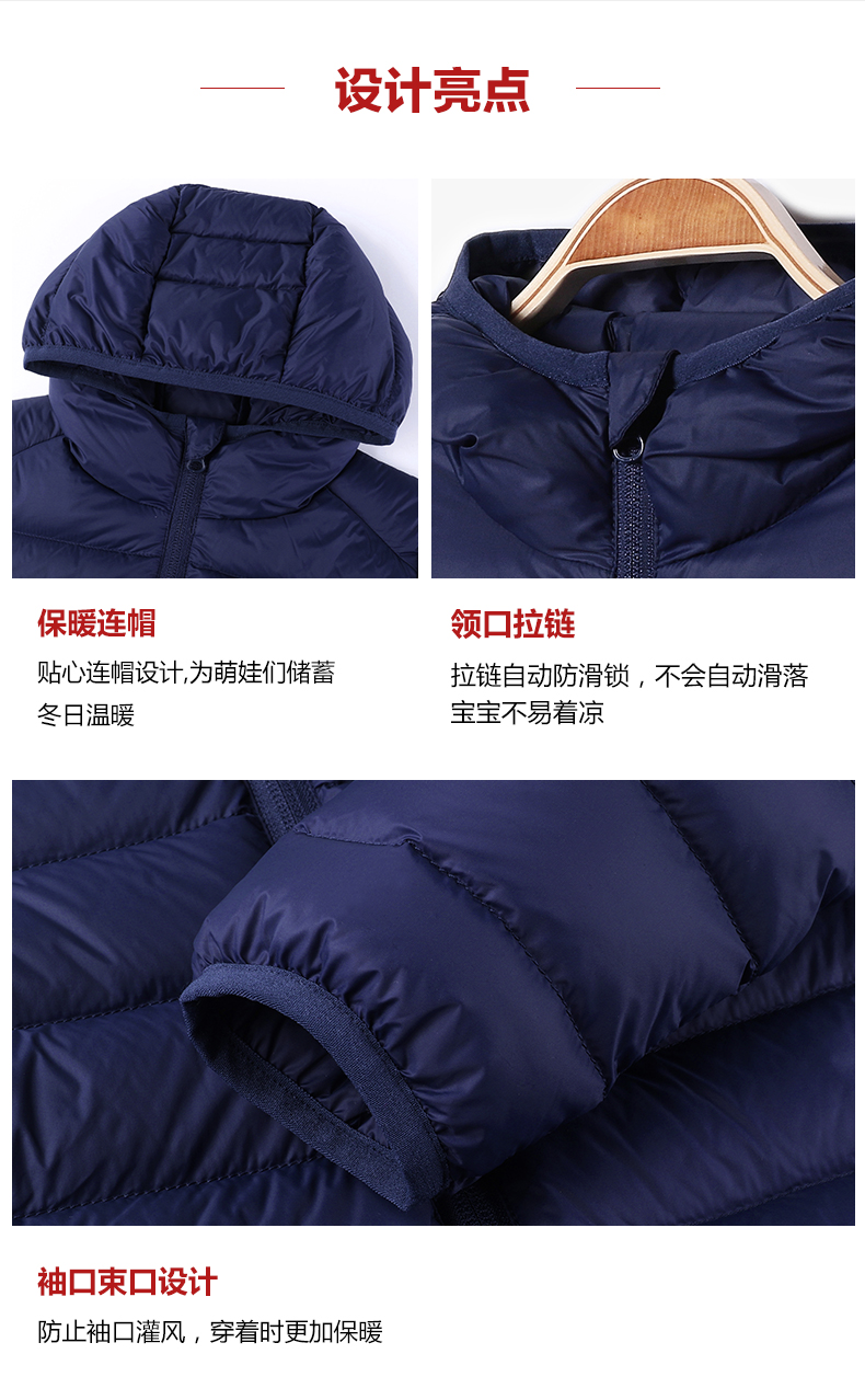 面料采用超细尼龙材质,高支高密,具有良好的抗撕裂和防钻绒能力,可防小雨,不易钻绒。细节和桑,袖口和下摆弹力收口设计,增加保暖性防钻风。大身拉链袋有护角,防止夹到宝宝肌肤。简约纯色款式,休闲百搭。